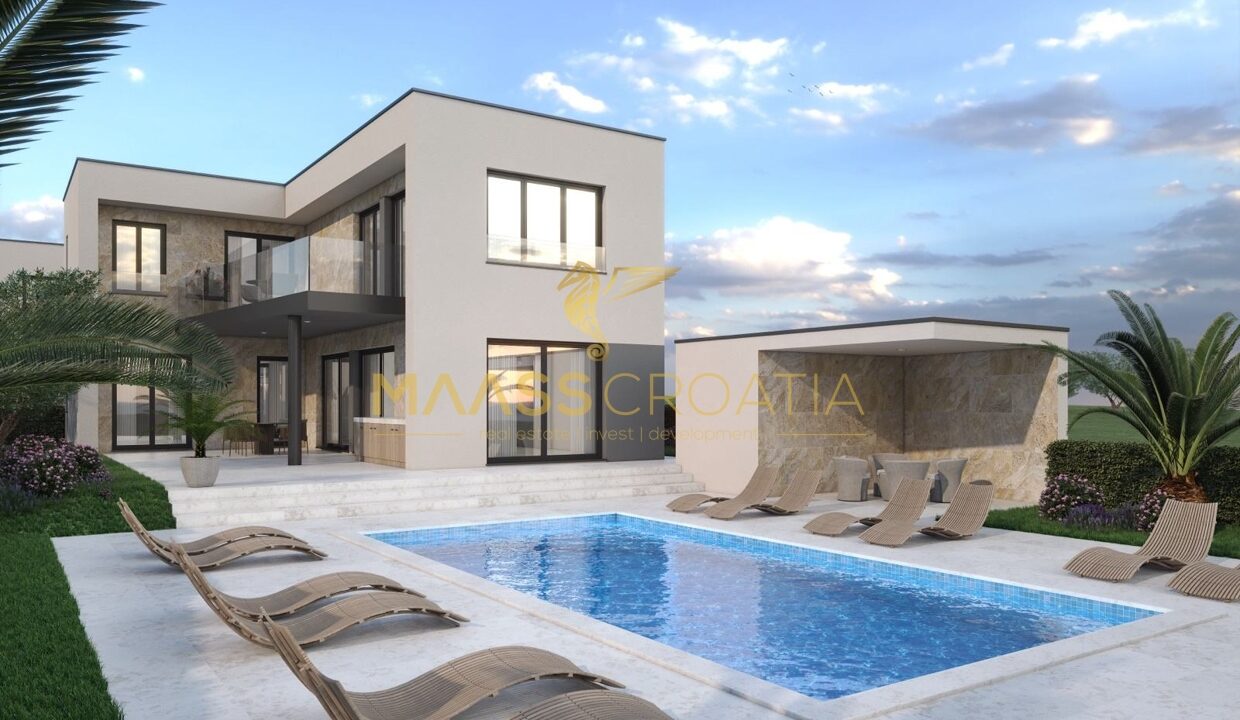 Modern villa medencével és panorámás kilátással a Brijuni-szigetekre