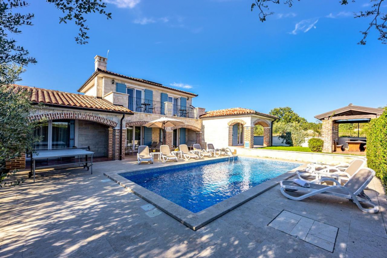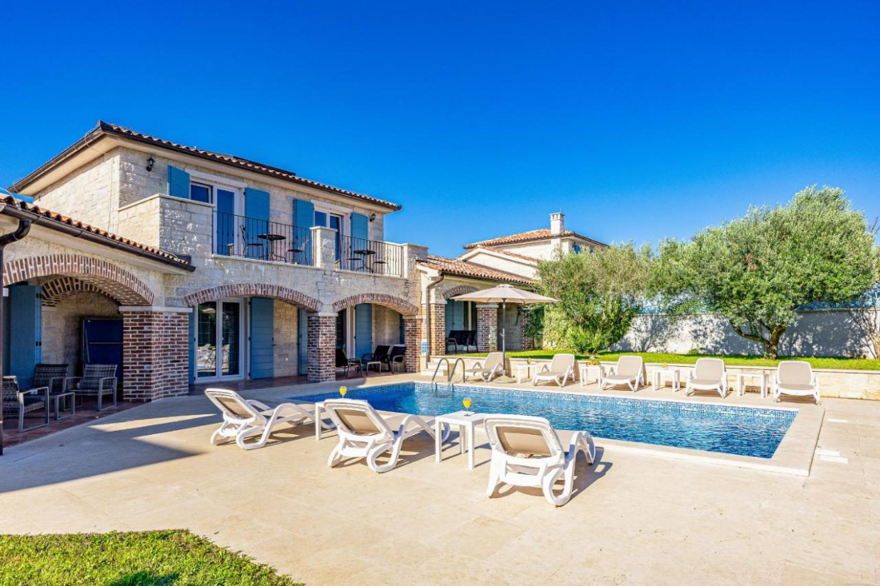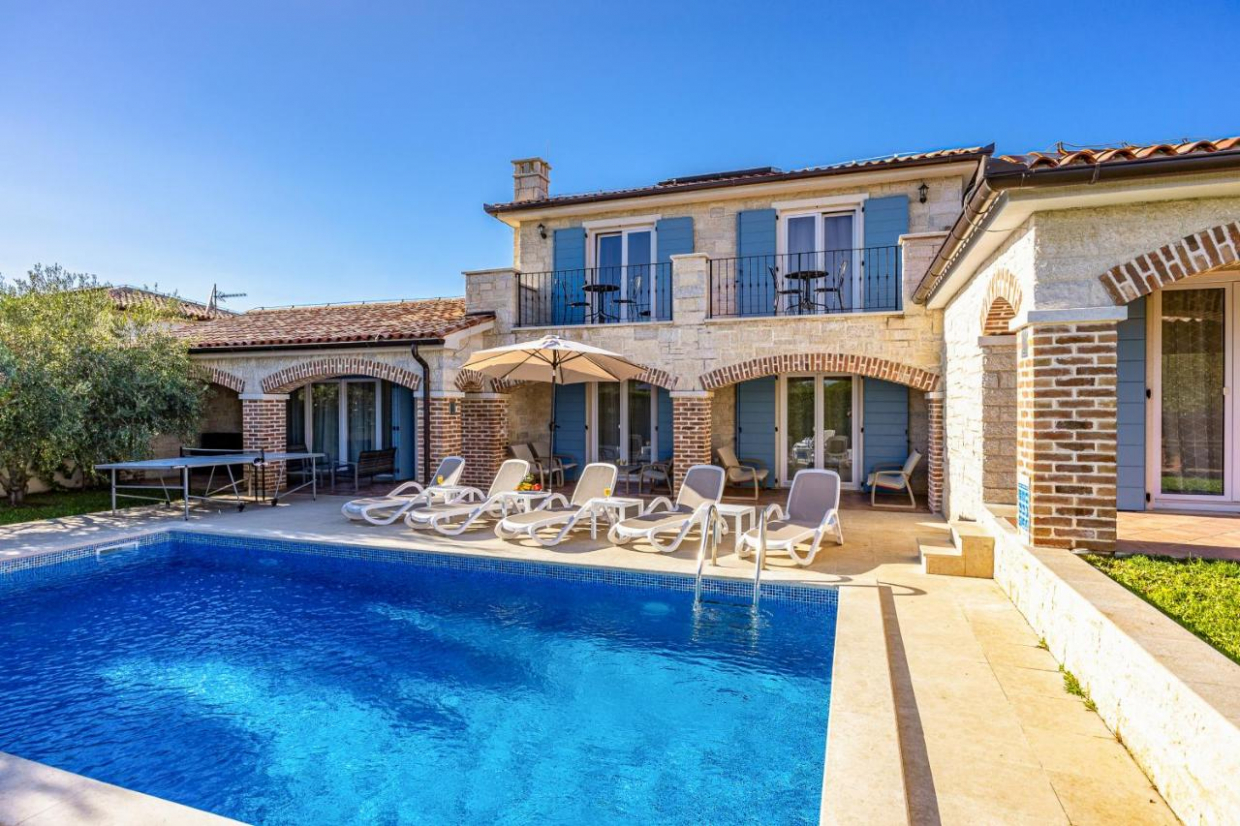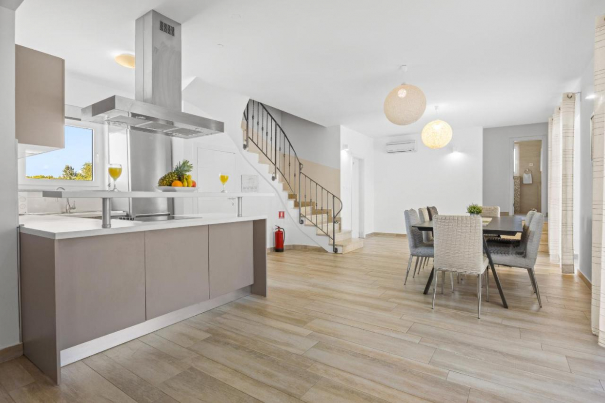 Egy modern villa medencével, amely jelenleg építés alatt áll. A ház földszintből és első emeletből áll. A...