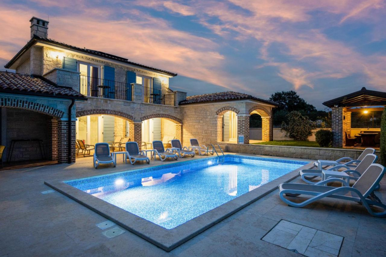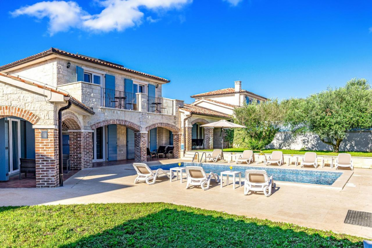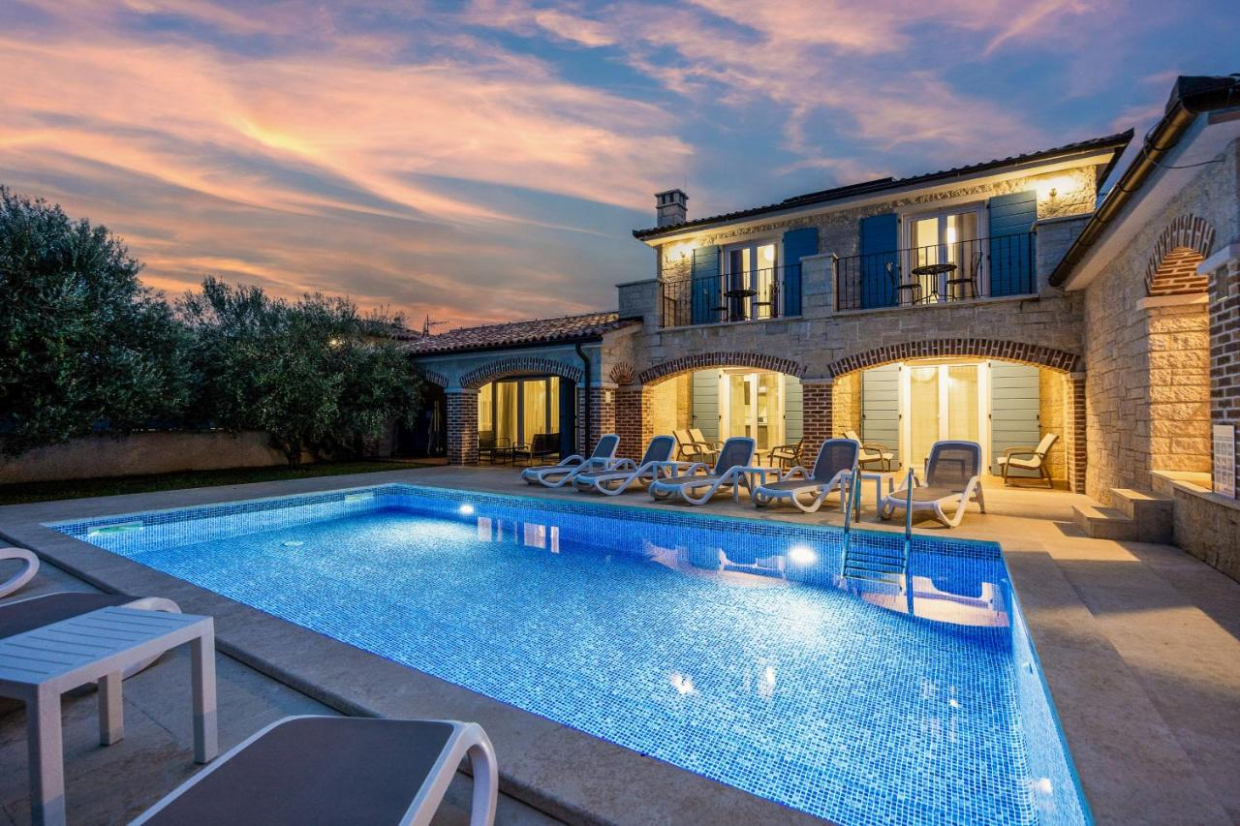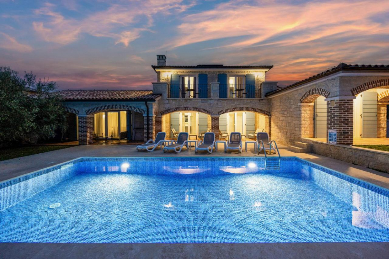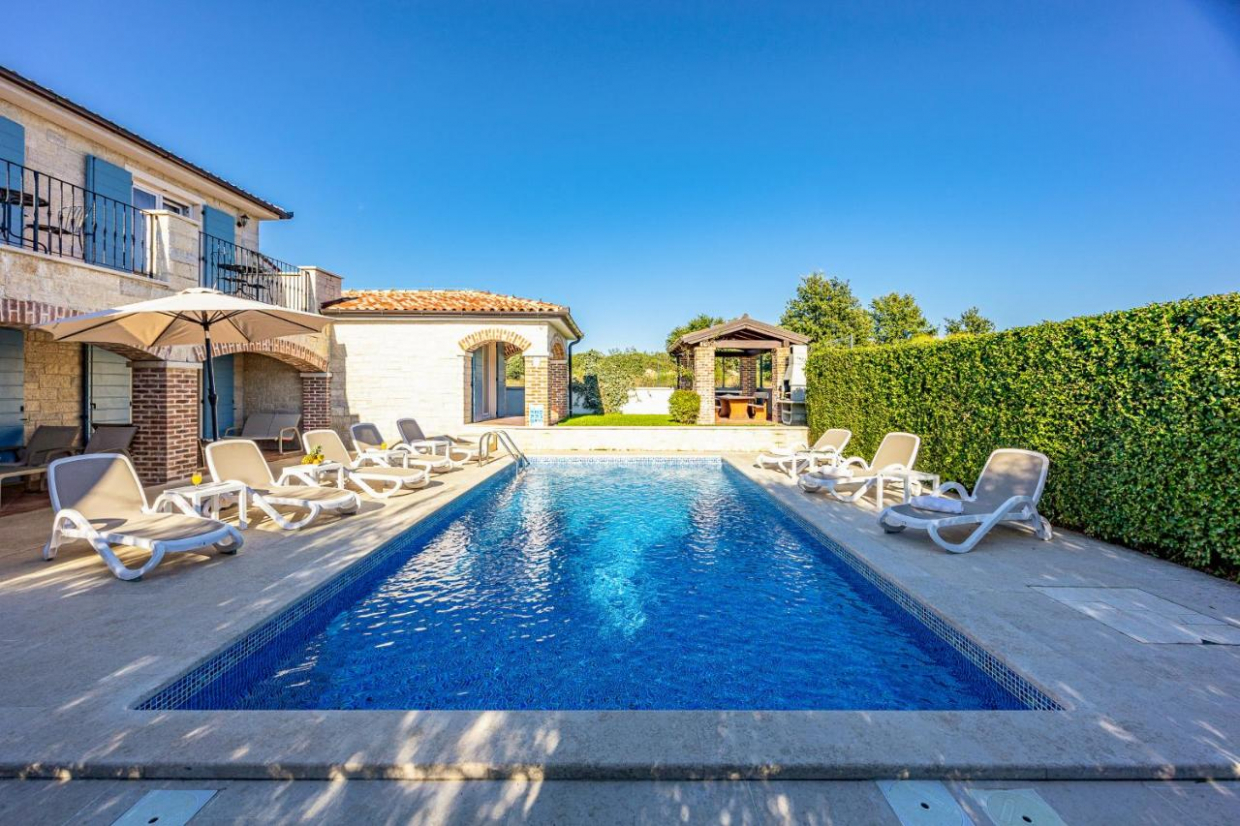 Egy modern villa medencével, amely jelenleg építés alatt áll. A ház földszintből és első emeletből áll. A...