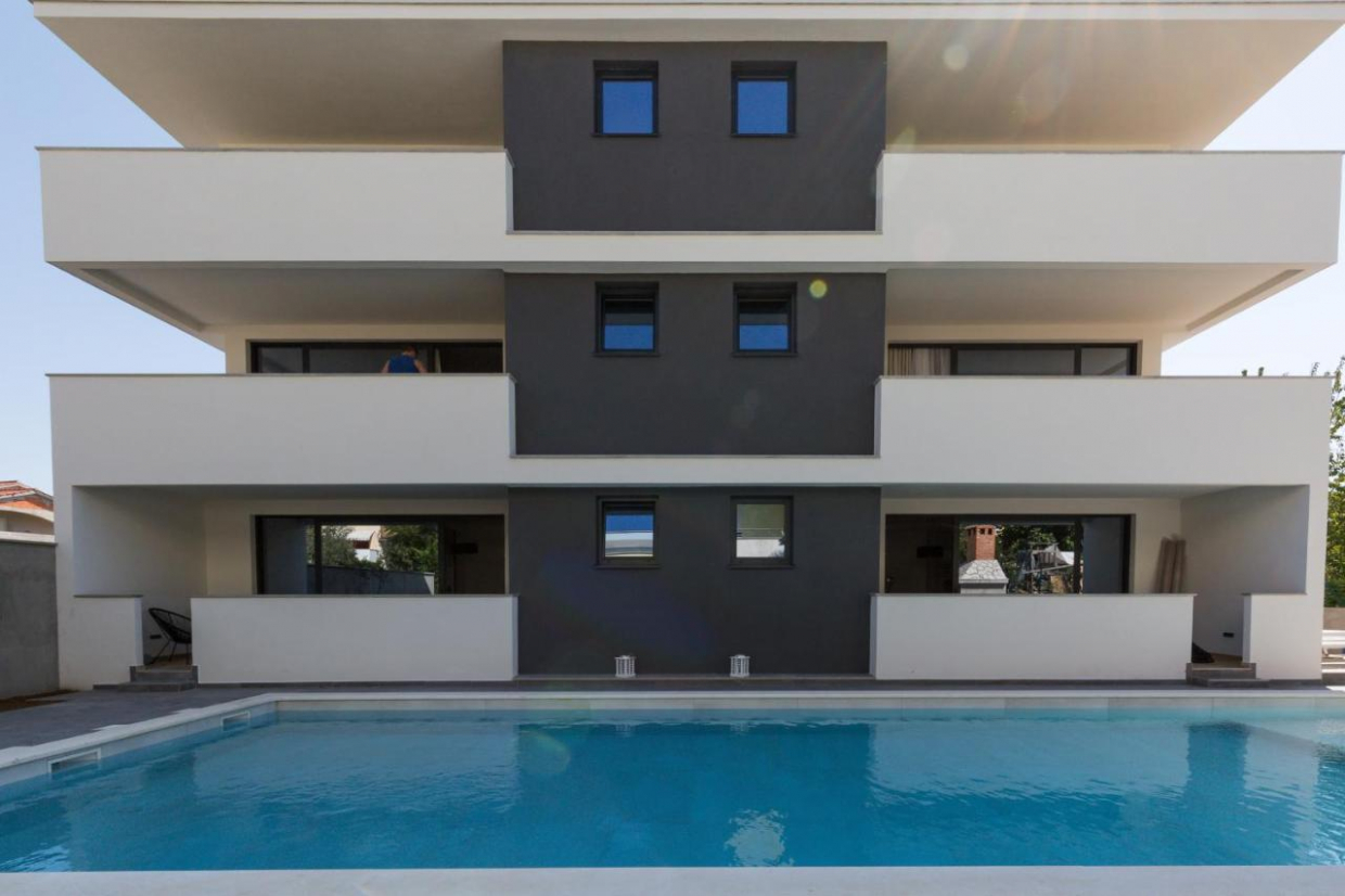 Gyönyörű apartmanház medencével, csendes helyen