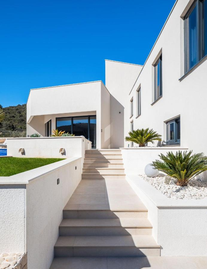 Történelmi fennmaradt épület sok földdel a tengerparton