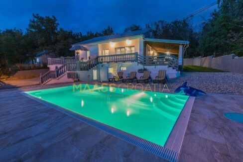 A ház előtt található a 29 m²-es, fűtött, tengervizes medence, amely tökéletes kikapcsolódást biztosít.