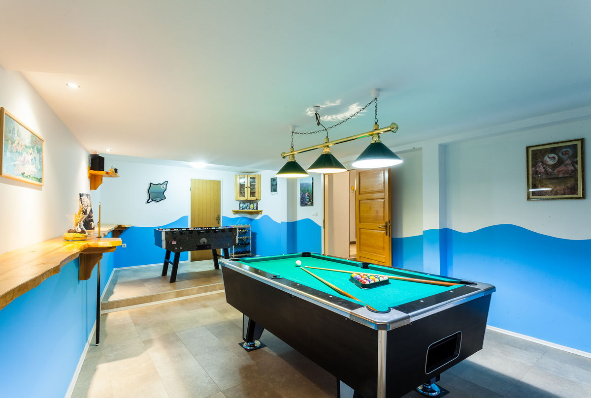 A tágas nappali és a ház teljes belső tere nagyon modern és stílusos, teljesen felszerelt, elegáns és modern készülékekkel. Ennek az otthonnak egy további bónusza egy további játékszoba egy biliárdasztallal, biztosítva, hogy mindig rengeteg hely álljon rendelkezésre a szórakozáshoz.