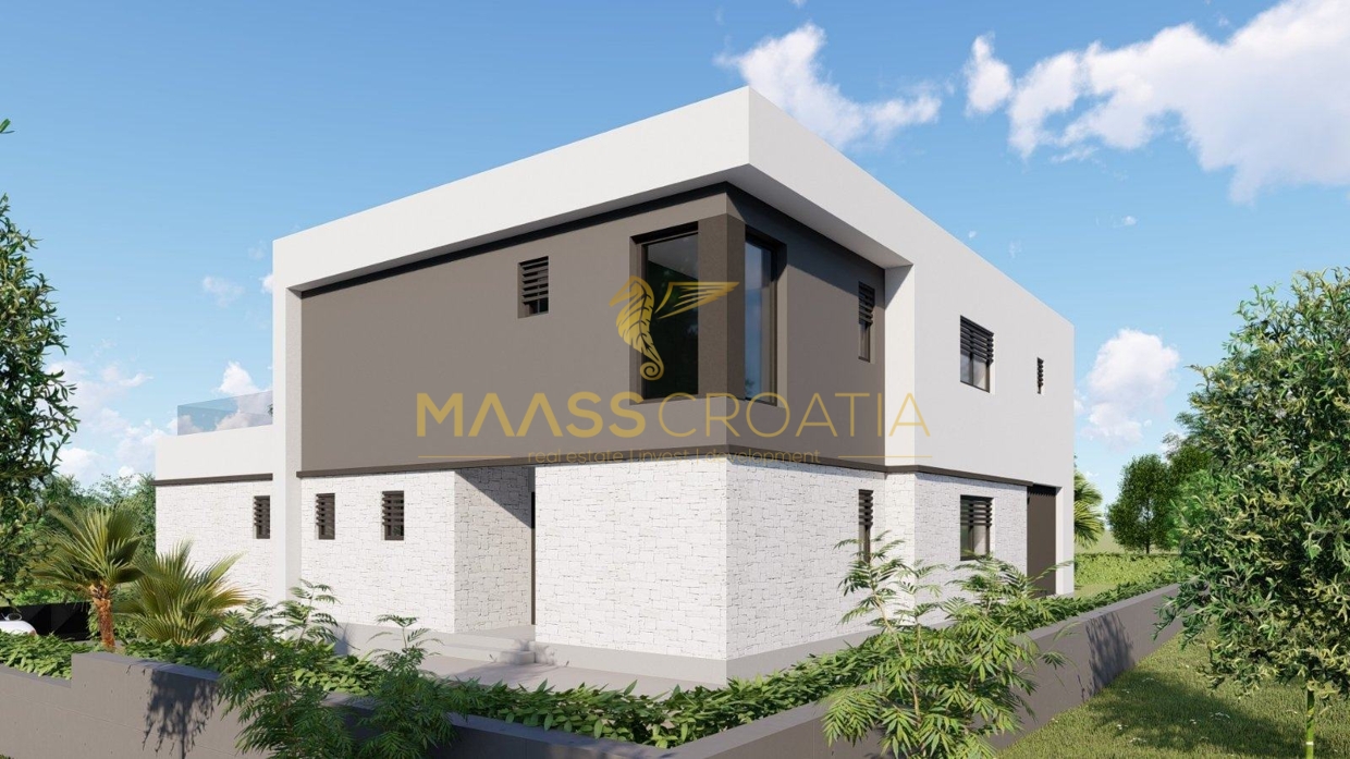 Eladó egy 260 m²-es építési telek egy építés alatt álló luxusvillával, amely Marčana-ban található, egy csendes, olajfaligetekkel és nyílt mezőgazdasági területekkel körülvett környéken. A villa modern kialakítású, végtelenített medencével, nagy teraszokkal és panorámás kilátással rendelkezik Učkára, Velebitre és Cresre.