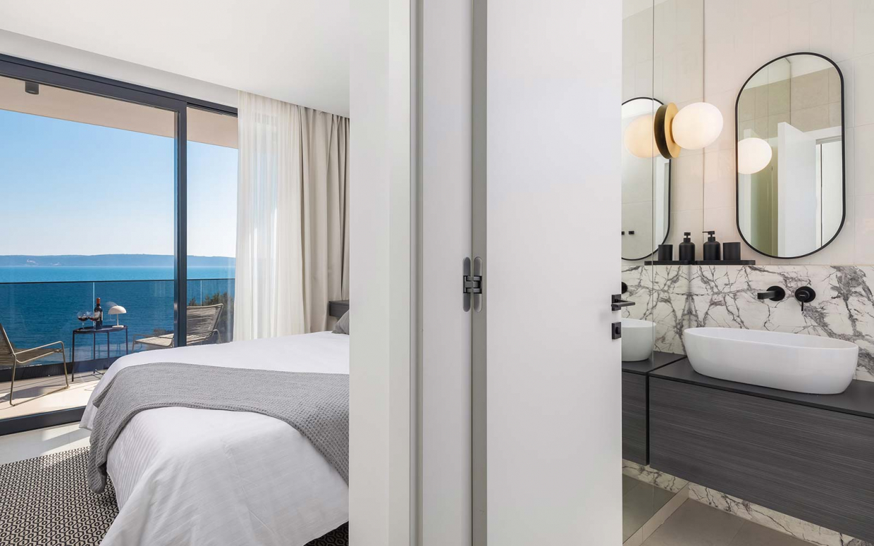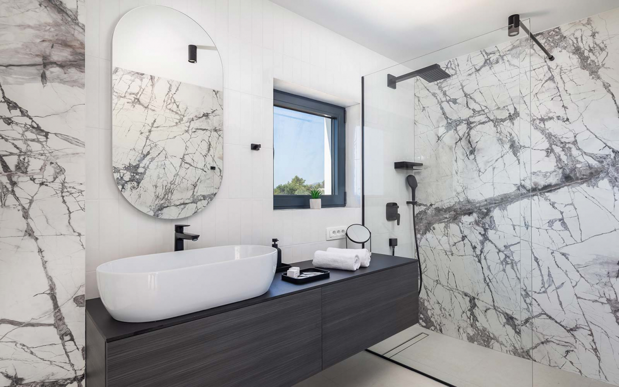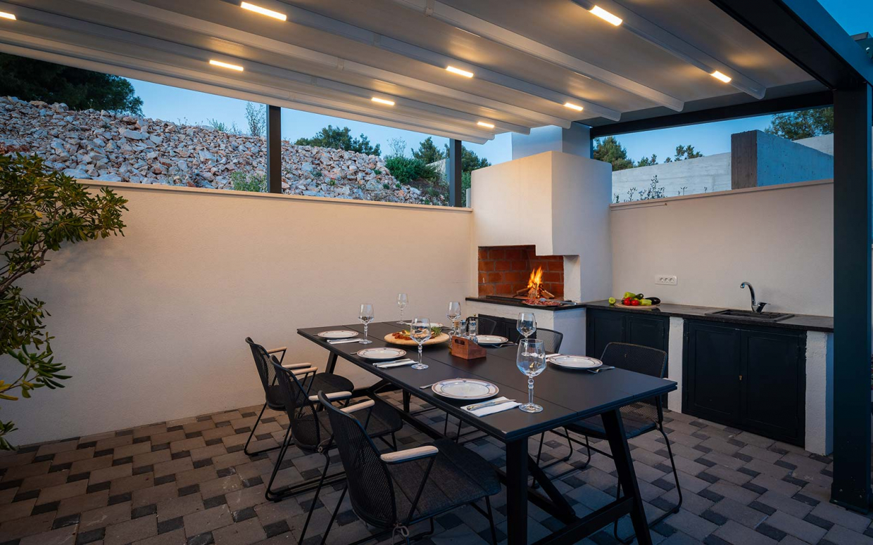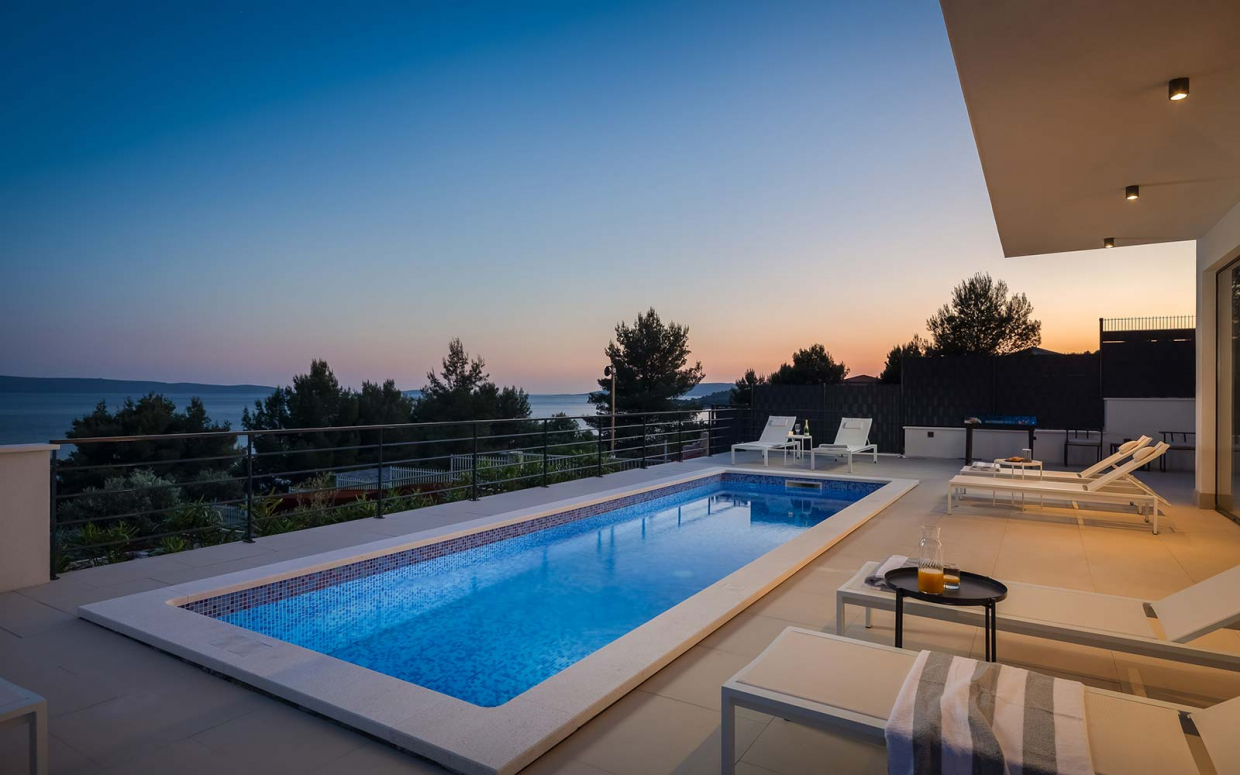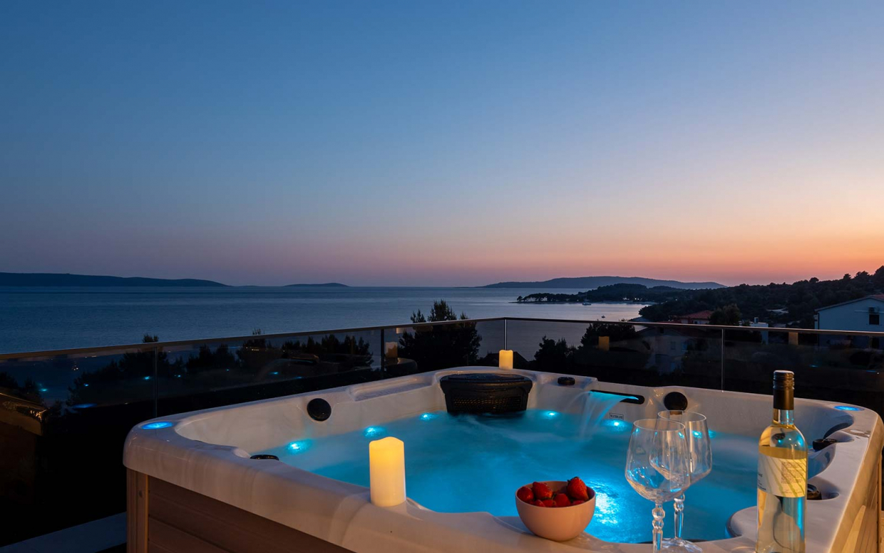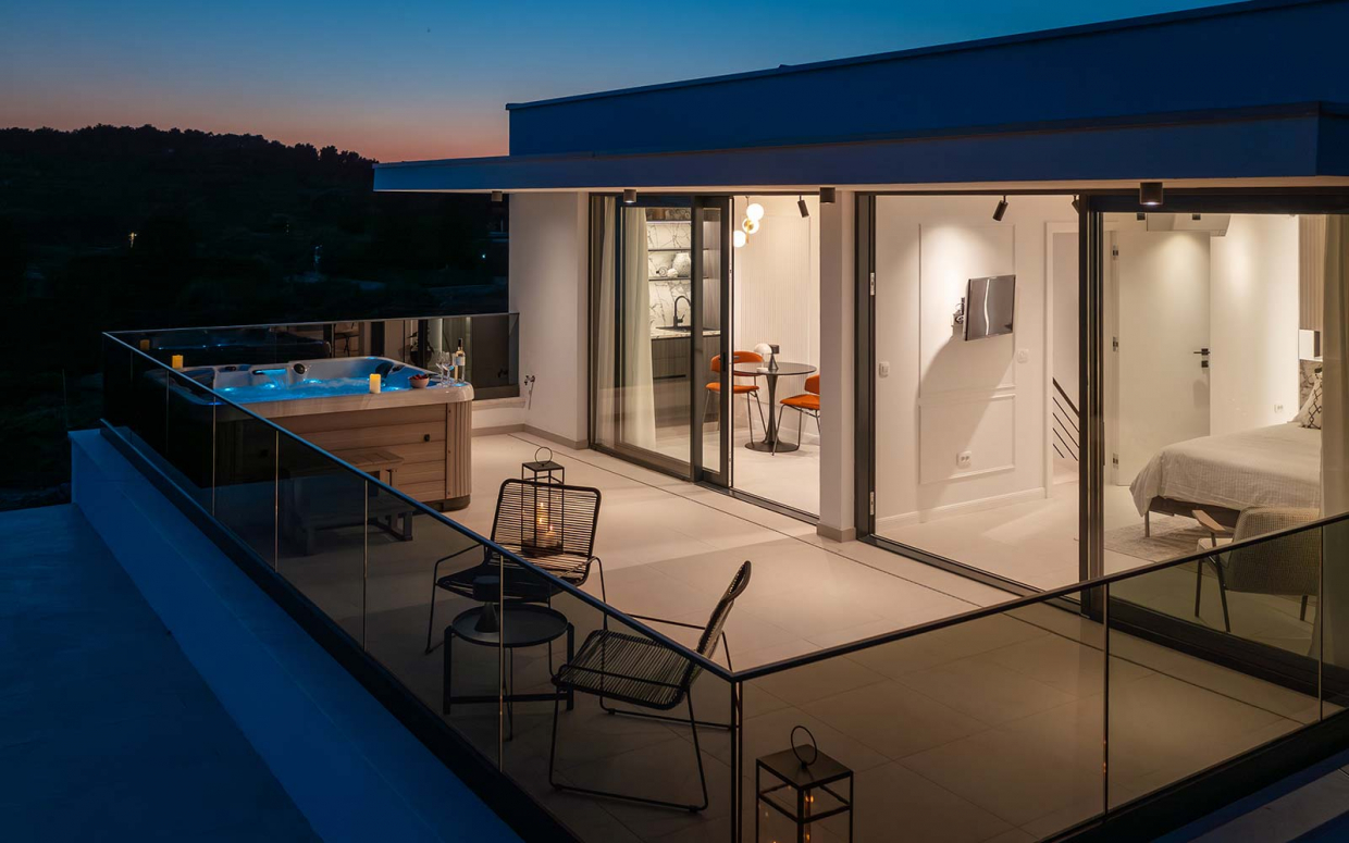 Atemberaubender Meerblick von Haus und Pool: Wunderschöne Steinvilla auf einem Hügel