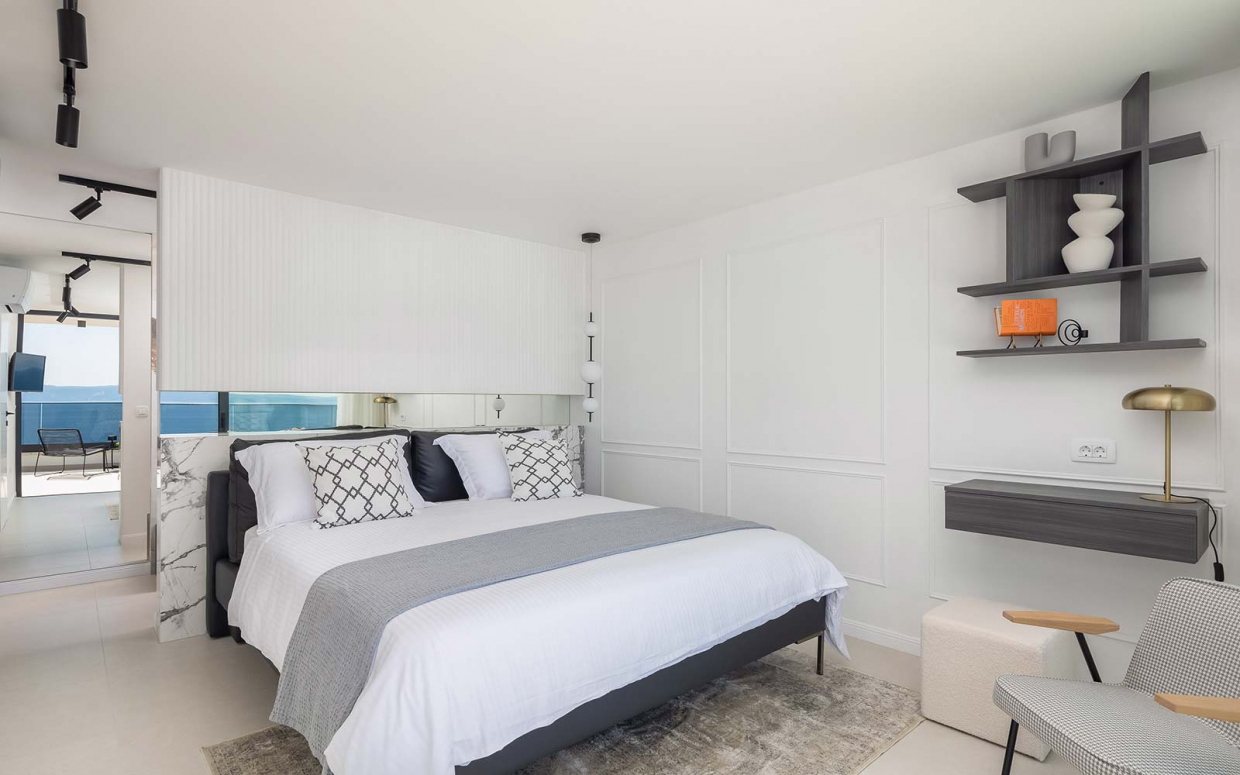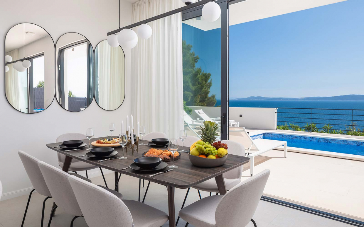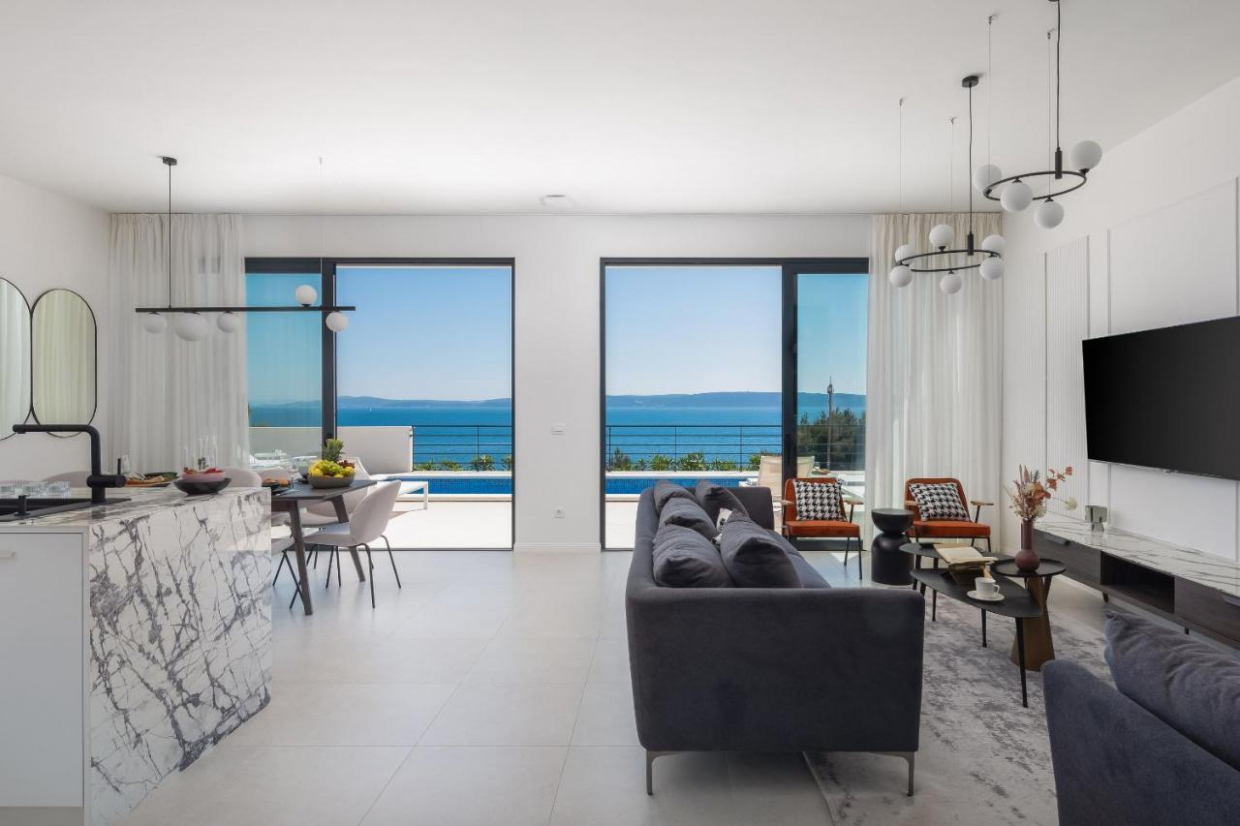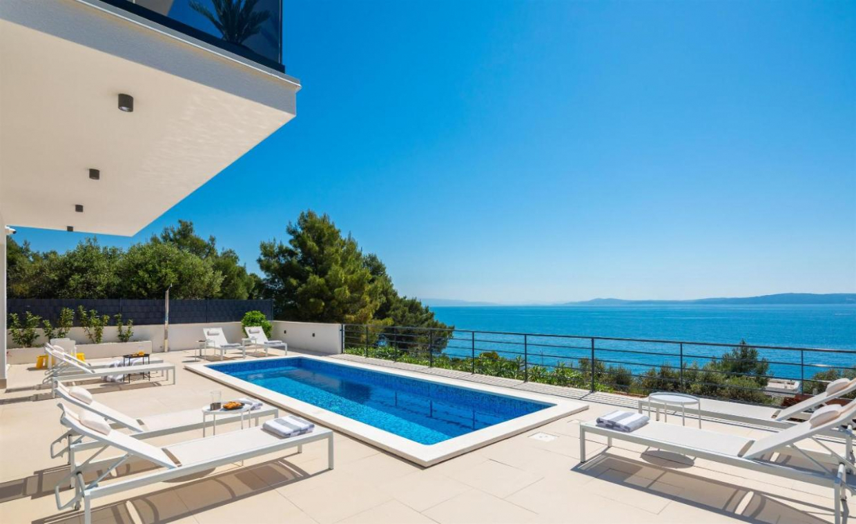 Ez a fantasztikus villa fantasztikus tengerparti kilátással, kék-fehér kombinációban azonnal megragadja a...