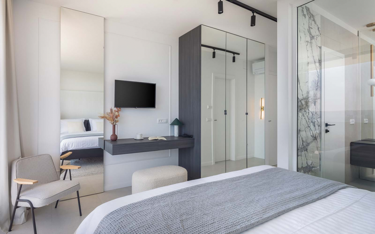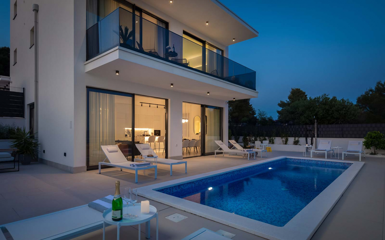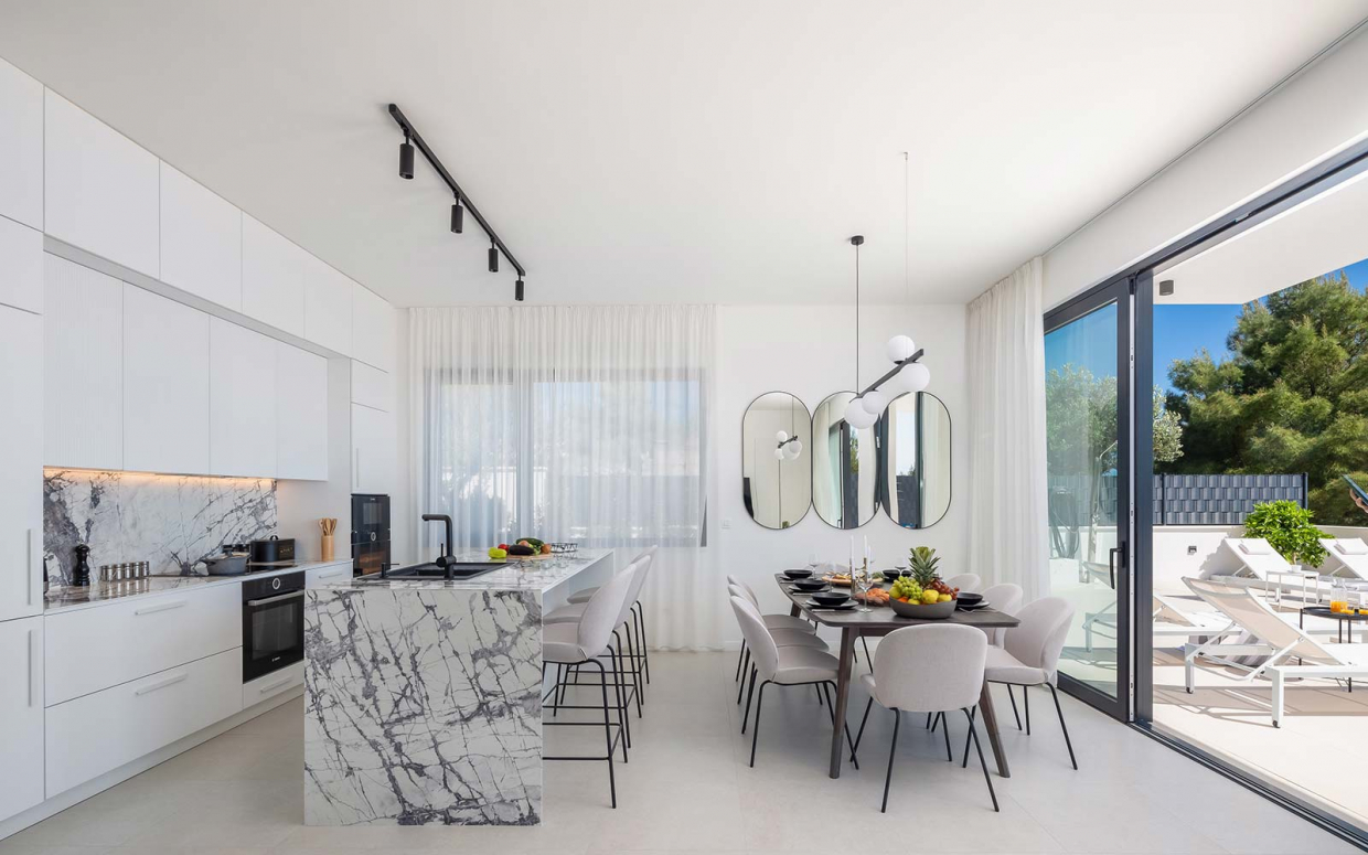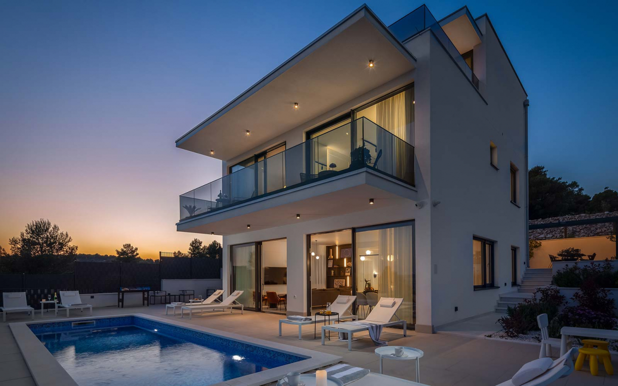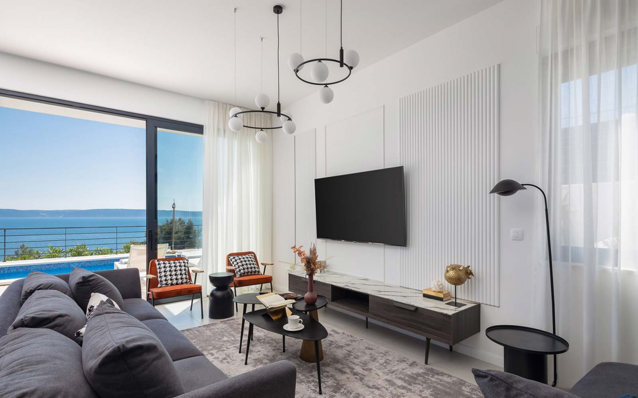 Ez a fantasztikus villa fantasztikus tengerparti kilátással, kék-fehér kombinációban azonnal megragadja a...