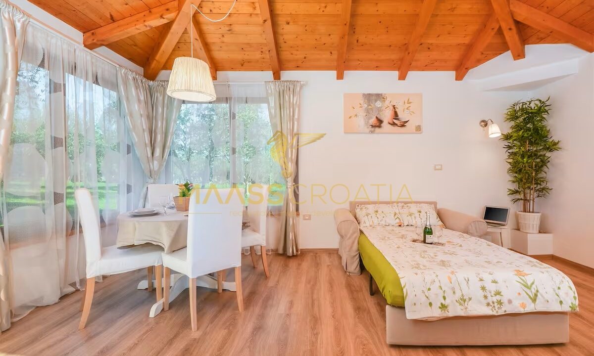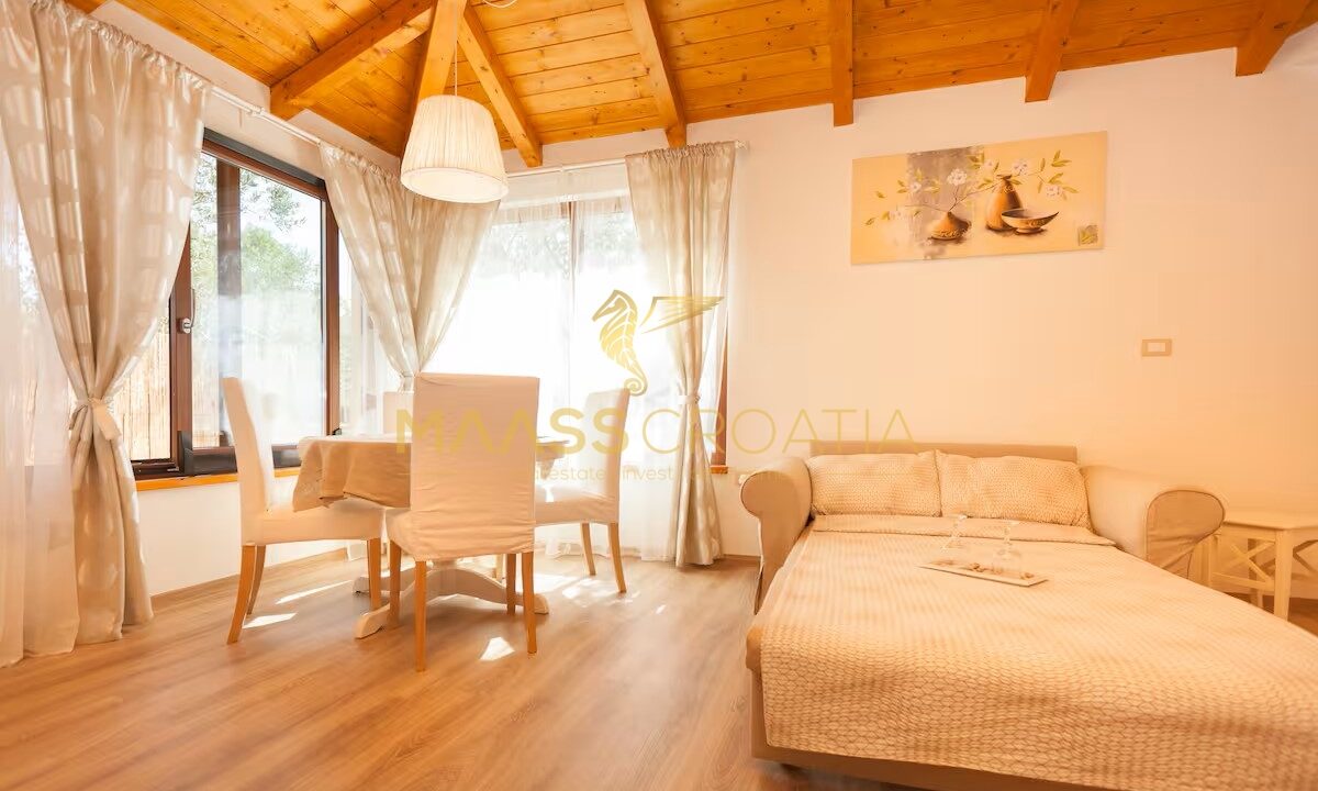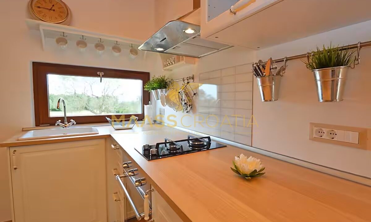 Egy csendes külvárosi településen, Pulától és Fažanától mindössze néhány percre, egy elegáns házat kínálunk eladásra, amely egyesíti a kényelmet, a modern designt és a tökéletes elhelyezkedést. Az olajfaligetekkel körülvett és a távoli tengerre néző ingatlan ideális menedéket kínál a nyugodt élethez, a pihenéshez vagy egy jövedelmező befektetéshez az idegenforgalmi ágazatban.