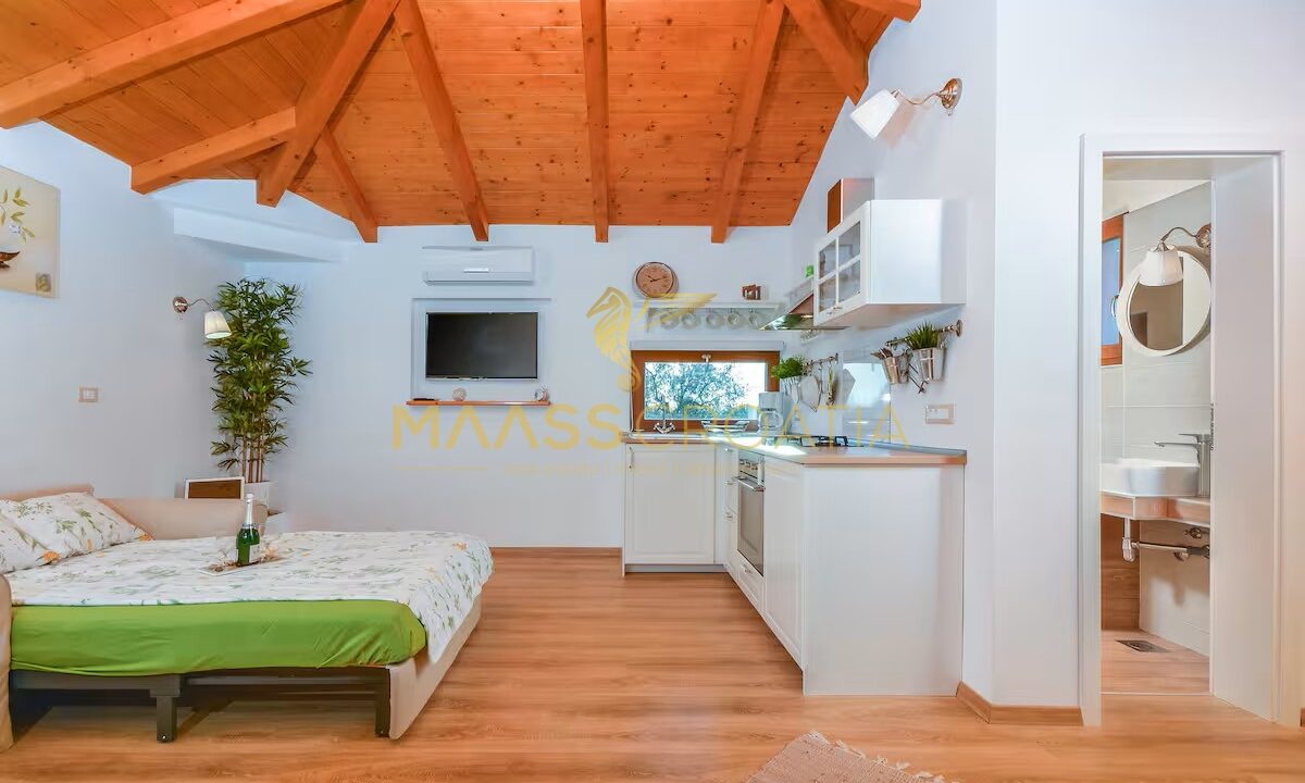 Az ingatlanon található másik épület különleges értéket képvisel: egy 31 m²-es, teljesen felszerelt stúdiólakás, amely tökéletes turisztikai bérbeadásra vagy vendégszállásra, valamint egy 32 m²-es tárolóhelyiség, amely raktárként használható vagy további funkcionális térré alakítható.