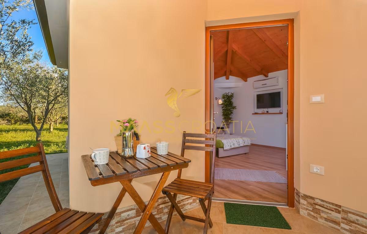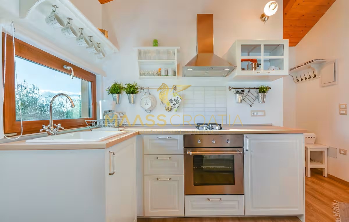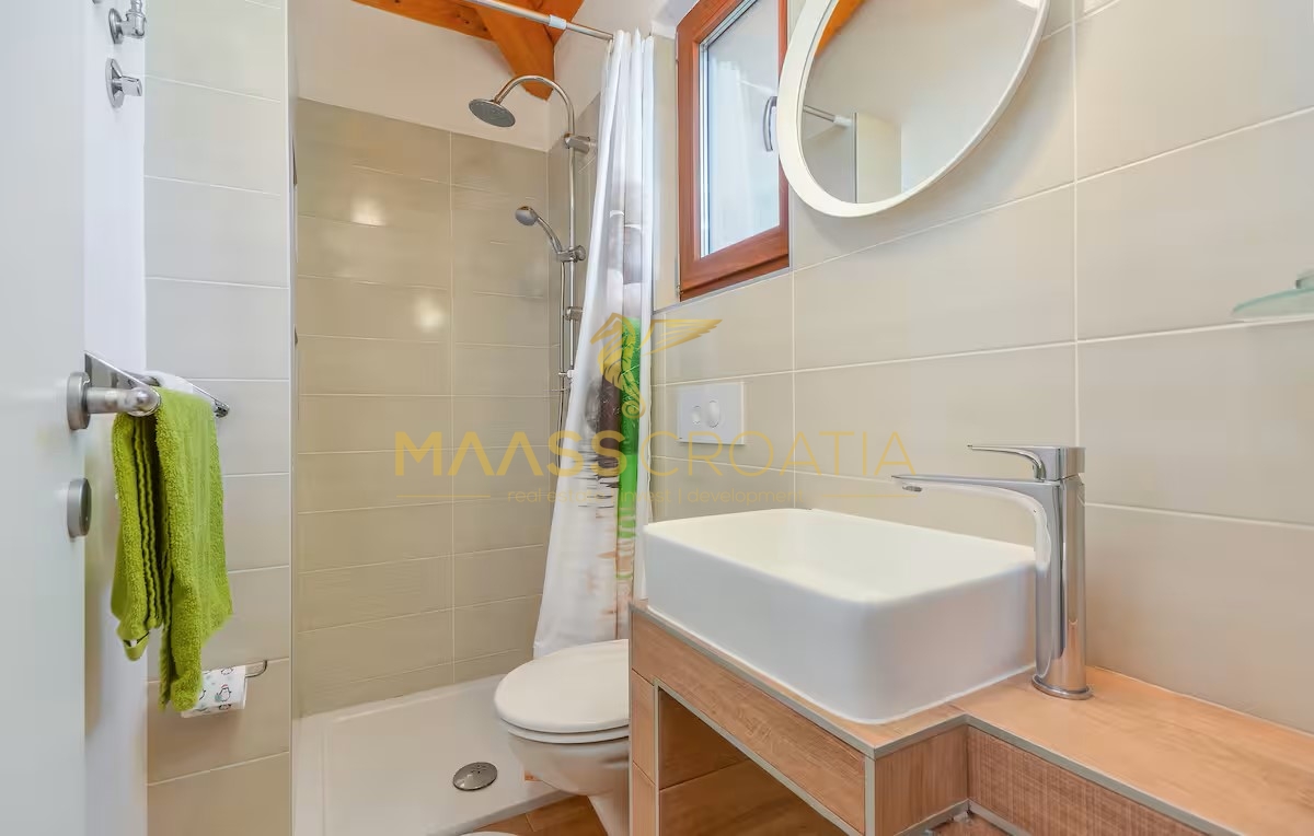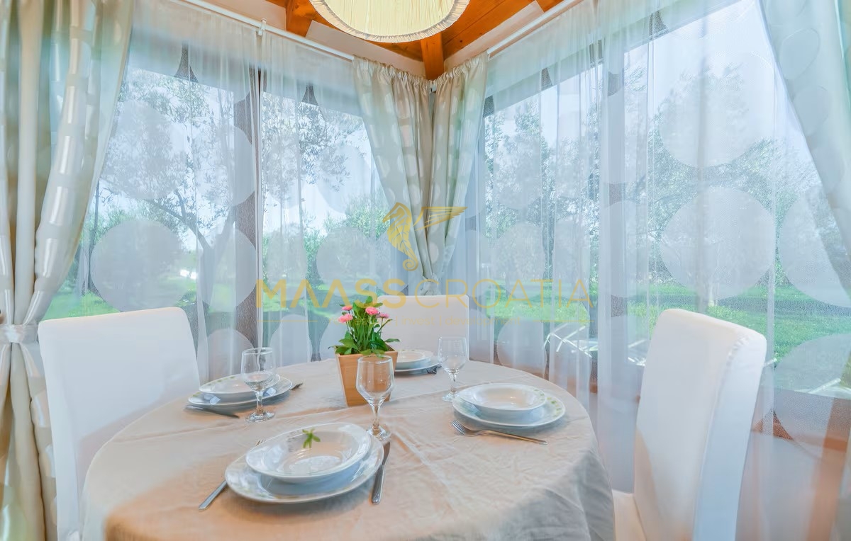 Egy csendes külvárosi településen, Pulától és Fažanától mindössze néhány percre, egy elegáns házat kínálunk eladásra, amely egyesíti a kényelmet, a modern designt és a tökéletes elhelyezkedést. Az olajfaligetekkel körülvett és a távoli tengerre néző ingatlan ideális menedéket kínál a nyugodt élethez, a pihenéshez vagy egy jövedelmező befektetéshez az idegenforgalmi ágazatban.