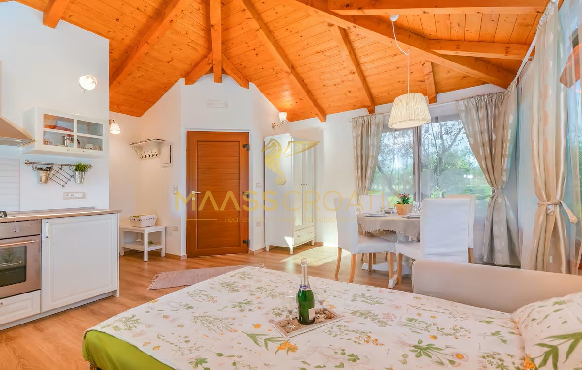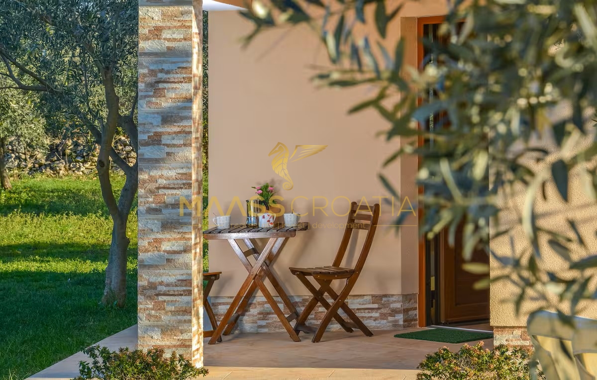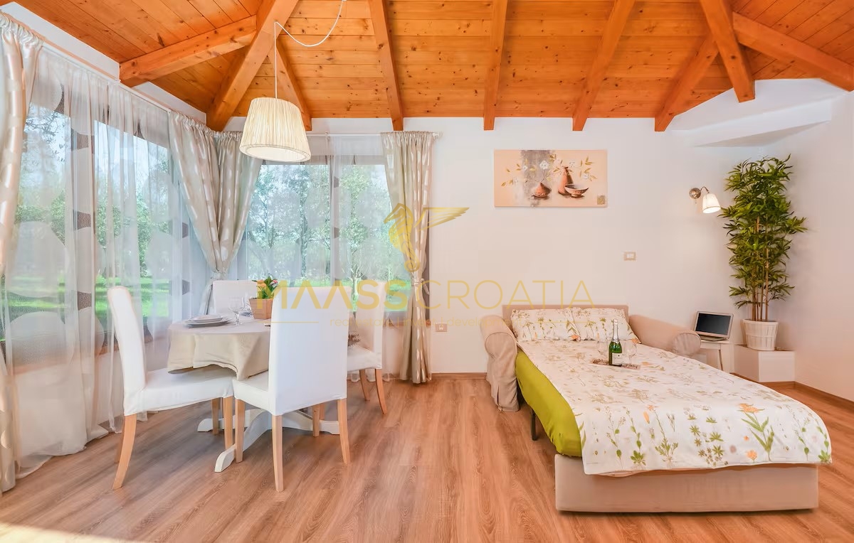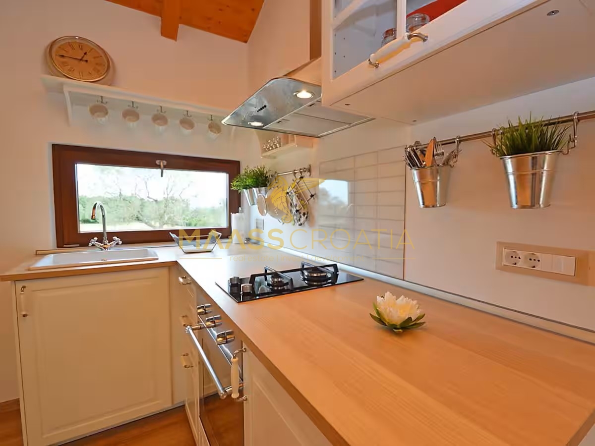 Egy csendes külvárosi településen, Pulától és Fažanától mindössze néhány percre, egy elegáns házat kínálunk eladásra, amely egyesíti a kényelmet, a modern designt és a tökéletes elhelyezkedést. Az olajfaligetekkel körülvett és a távoli tengerre néző ingatlan ideális menedéket kínál a nyugodt élethez, a pihenéshez vagy egy jövedelmező befektetéshez az idegenforgalmi ágazatban.