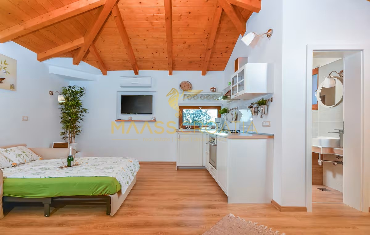 Az ingatlanon található másik épület különleges értéket képvisel: egy 31 m²-es, teljesen felszerelt stúdiólakás, amely tökéletes turisztikai bérbeadásra vagy vendégszállásra, valamint egy 32 m²-es tárolóhelyiség, amely raktárként használható vagy további funkcionális térré alakítható.