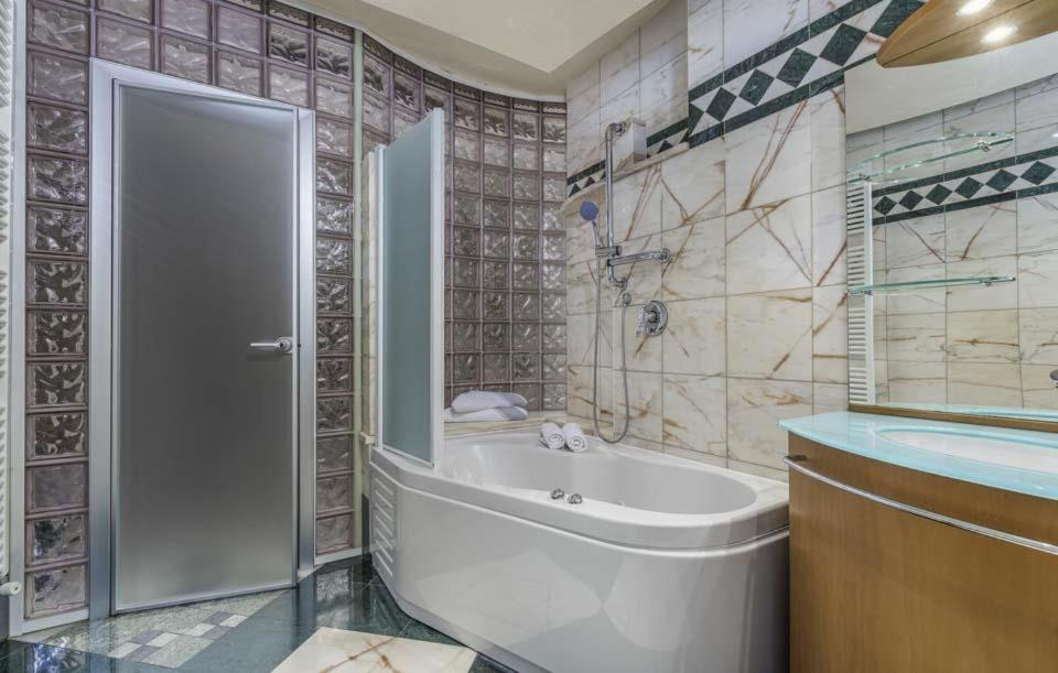 Gyönyörű új épület az első sorban, tengerre néző kilátással