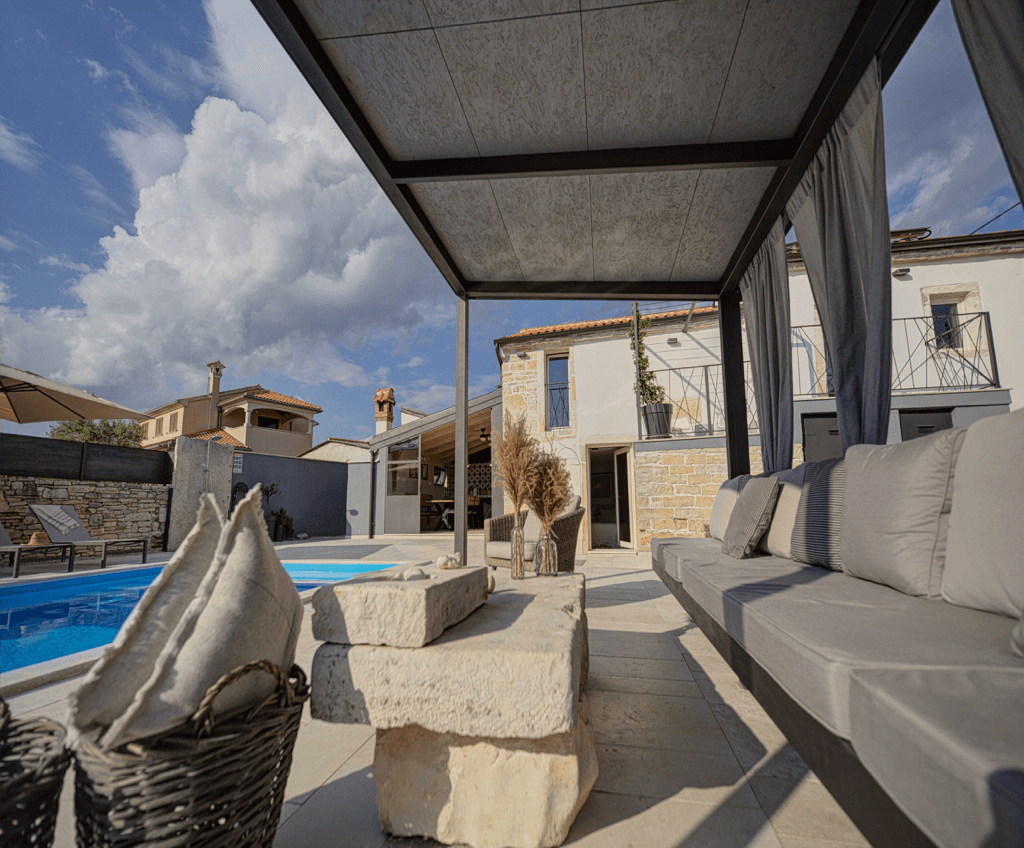 Régi isztriai kőház, két szintes, pajtával, 540 m2-es összterületen. A kert 3100 négyzetméteres. A házban...