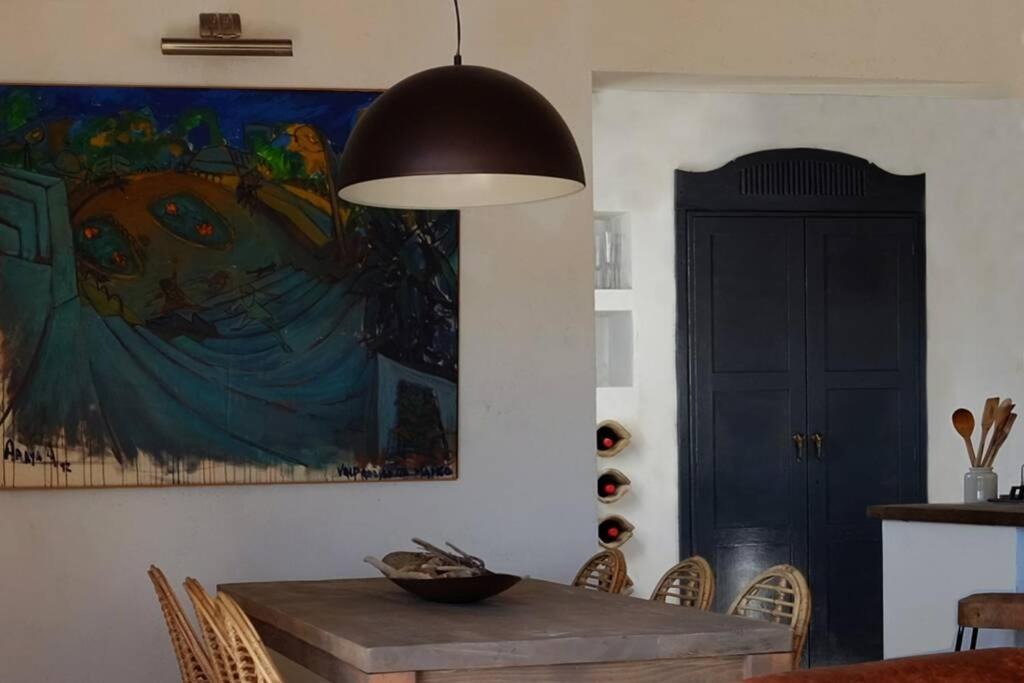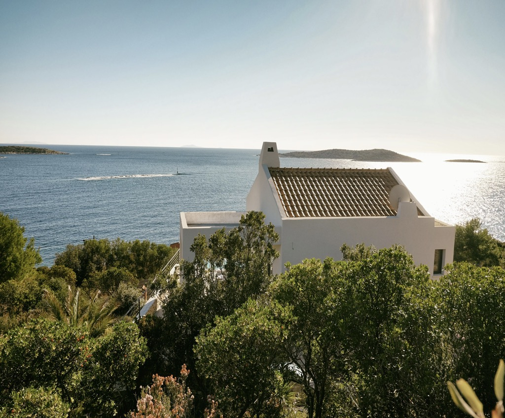Ez a kétszintes, hat hálószobás, 180 m2 alapterületű villa teljes egészében fehér színű, kőből készült részletekkel díszített, amelyek kiegészítik a háttérben lévő kék tengert, és 404 m2-es telken helyezkedik el.