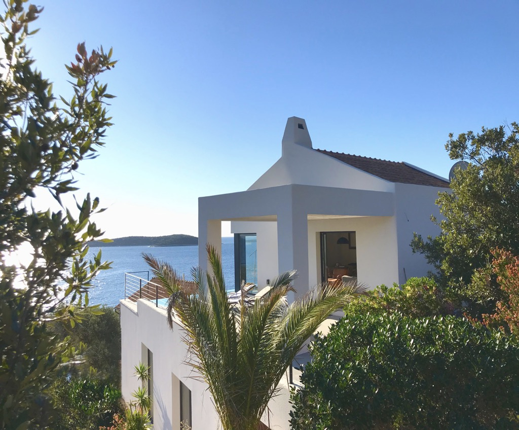 A kő és a fehér beton kombinációja egzotikus hangulatot teremt, és tükrözi ennek a bájos Vis-szigetnek a szellemét.