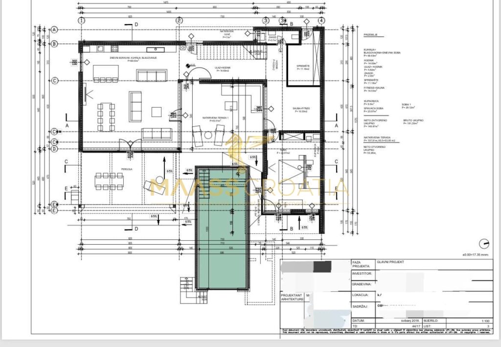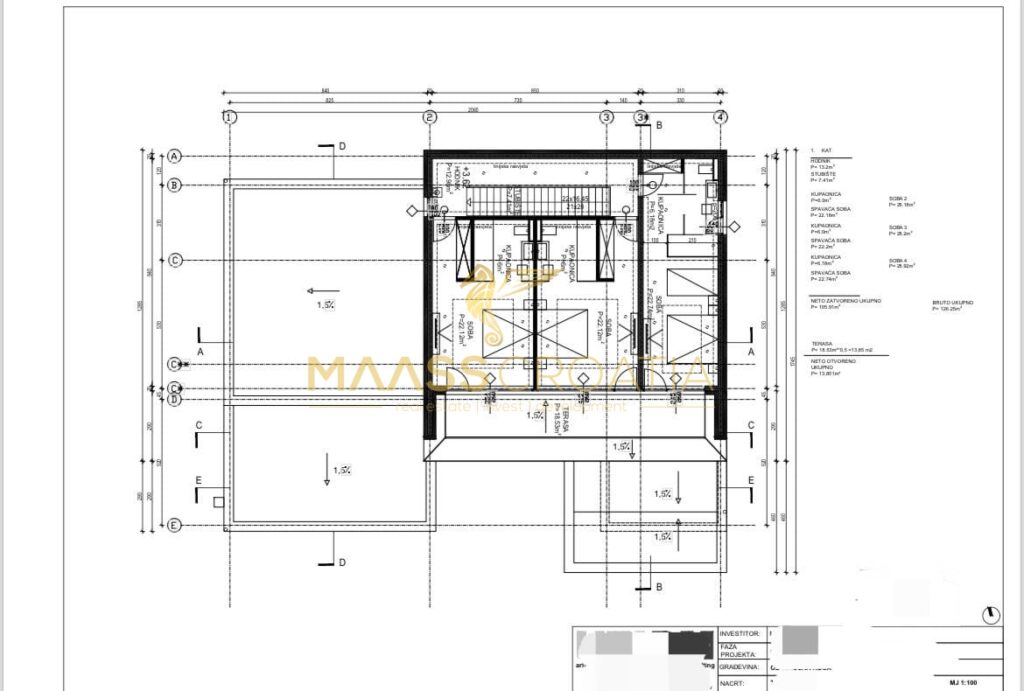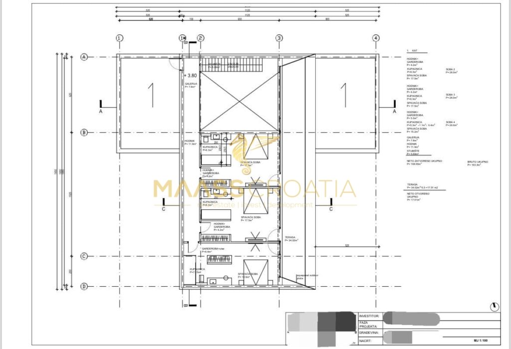 A ház teljes területe 504,57 m2. A nettó terület 404,47 m2. A telek területe 1113 m2. A villa teljesen bútorozottan kerül bemutatásra.