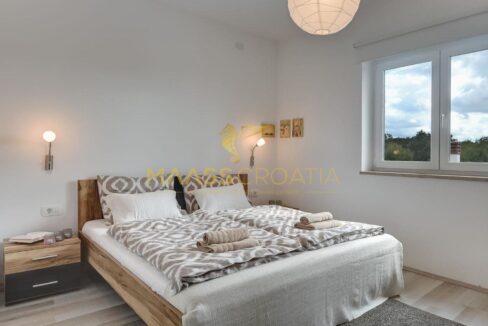 Az első emeleten három hálószoba, egy wc és egy fürdőszoba található ebben a lakásban, melyből egy 24 nm-es, természetre néző terasz nyílik. A nappaliból megközelíthető a 42 m2 összterületű fedett terasz, mely medencével és teljesen felszerelt nyári konyhával rendelkezik.