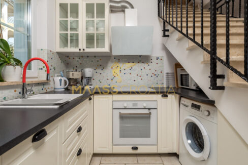Egy kisebb előszoba vezet a hálószobába és a fürdőszobába. Egy elegáns belső lépcső vezet az első emeletre, ahol két további hálószoba található, mindegyikhez egy fürdőszoba és a teraszra való kijárat tartozik, ahonnan csodálatos kilátás nyílik a tengerre.