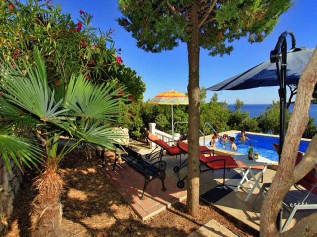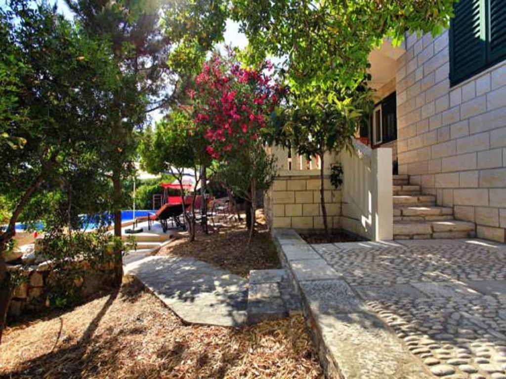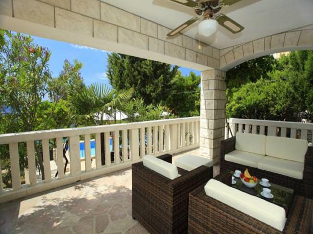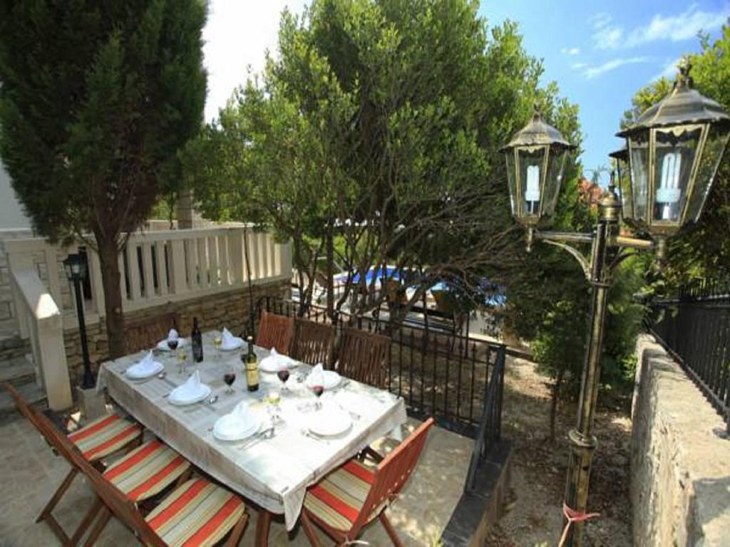A kültéri teraszon egy nagy medence, majd egy tágas asztal és ülőhely található, amely tökéletes a társasági élethez és a szórakozáshoz. A villához egy színes kis kert is tartozik, amely életre kelti az egész helyet.