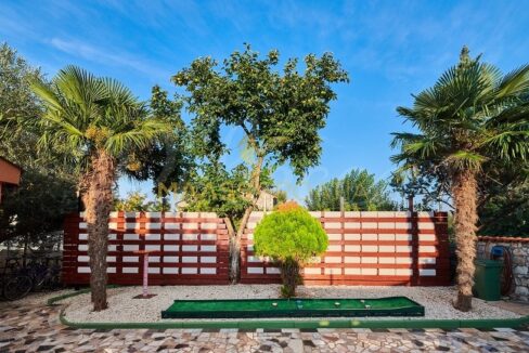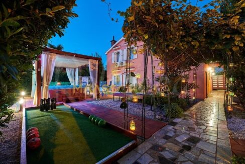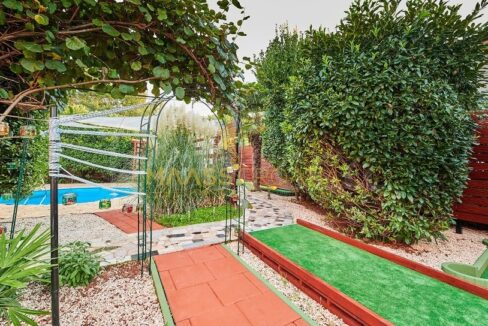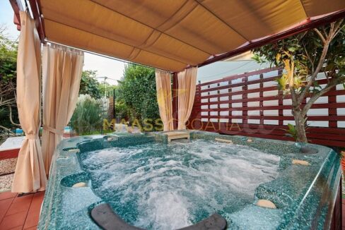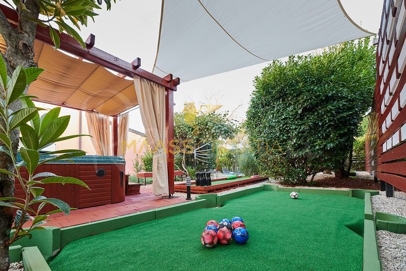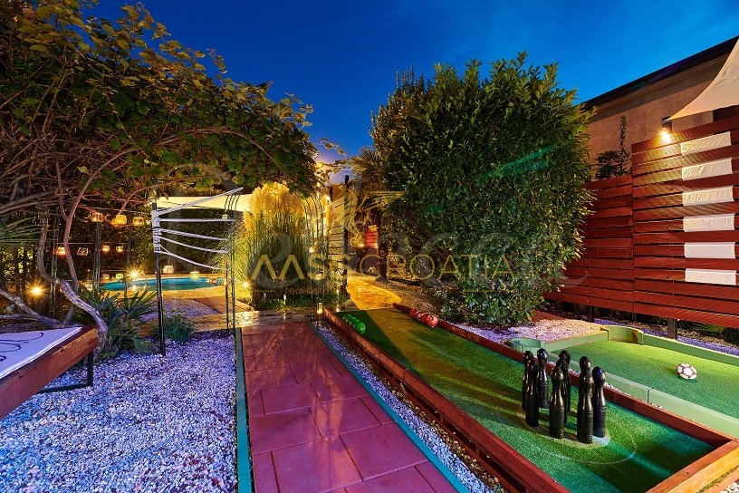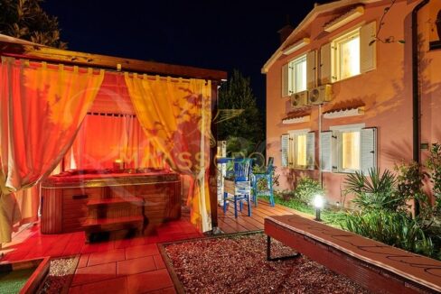 A villát egy kb. 700 m²-es telek veszi körül, amelyen egy úszómedence, egy külön fedett és megvilágított jacuzzi és további pihenésre és kikapcsolódásra szolgáló létesítmények, mint a minigolf és egy lábmedence található, mindez gyönyörű mediterrán növényekkel (olajbogyó, füge, cseresznye, babér stb.) körülvéve.