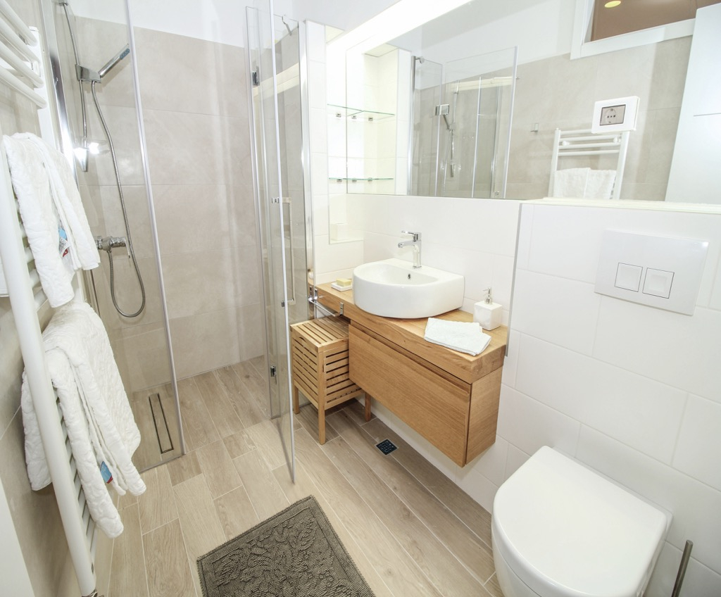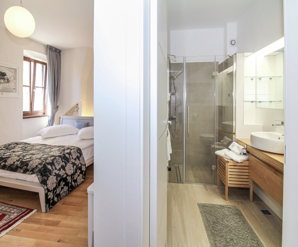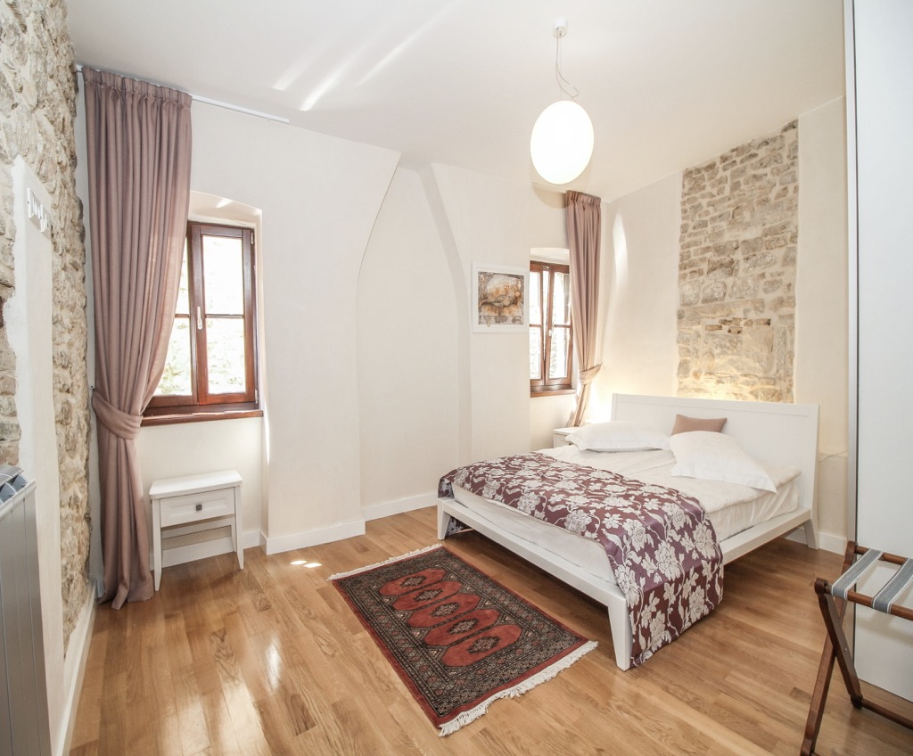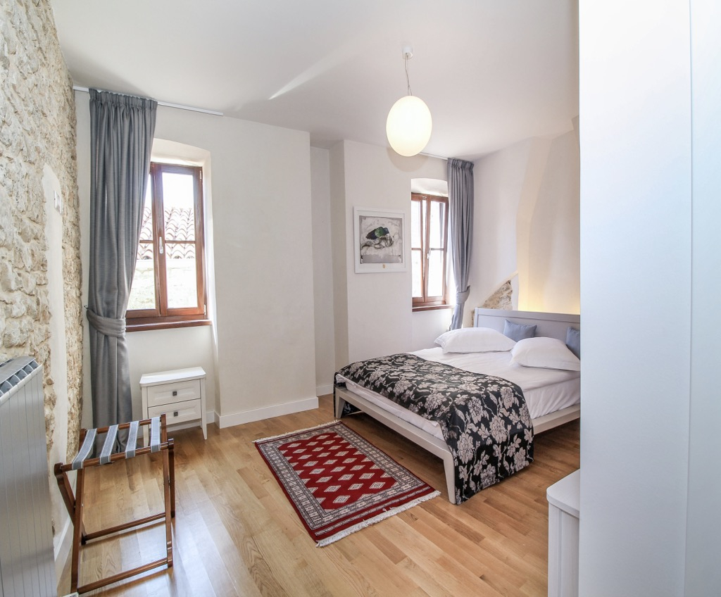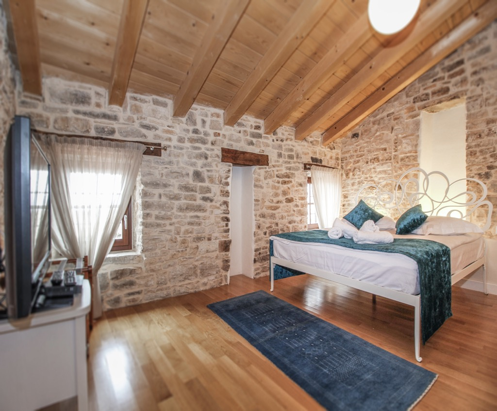 Az olyan részletek, mint a kőfalak, a fapadló és a fagerendák a tetőterületen, a régió jellegét adják ennek az otthonnak.