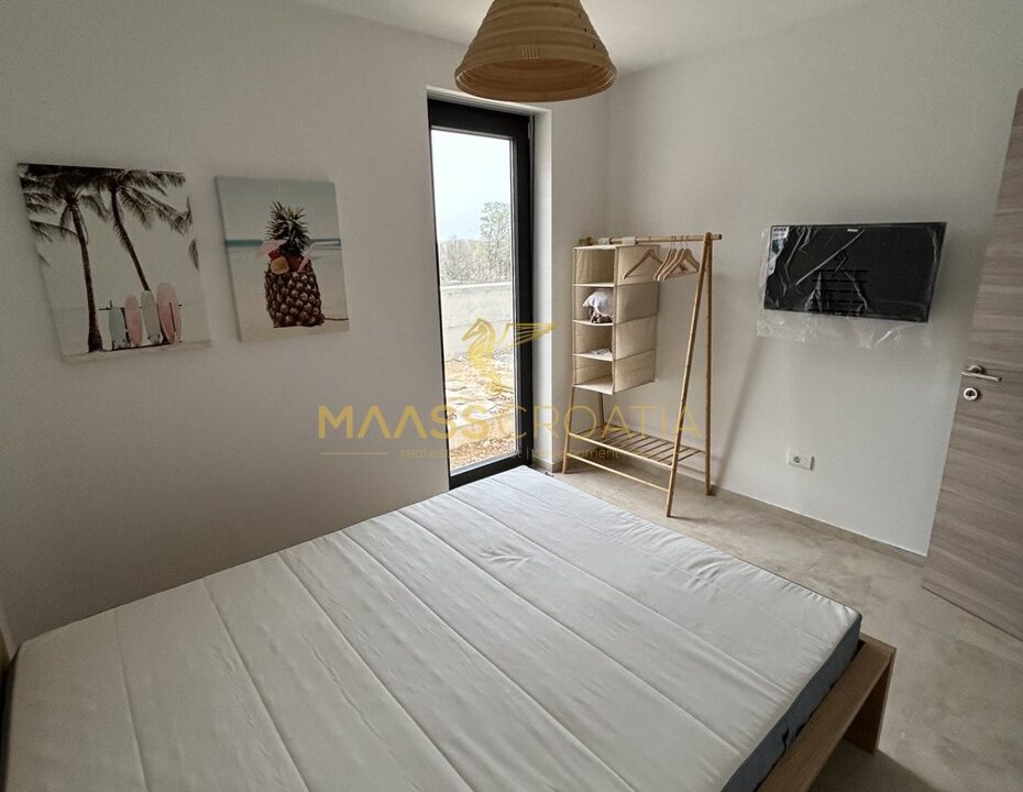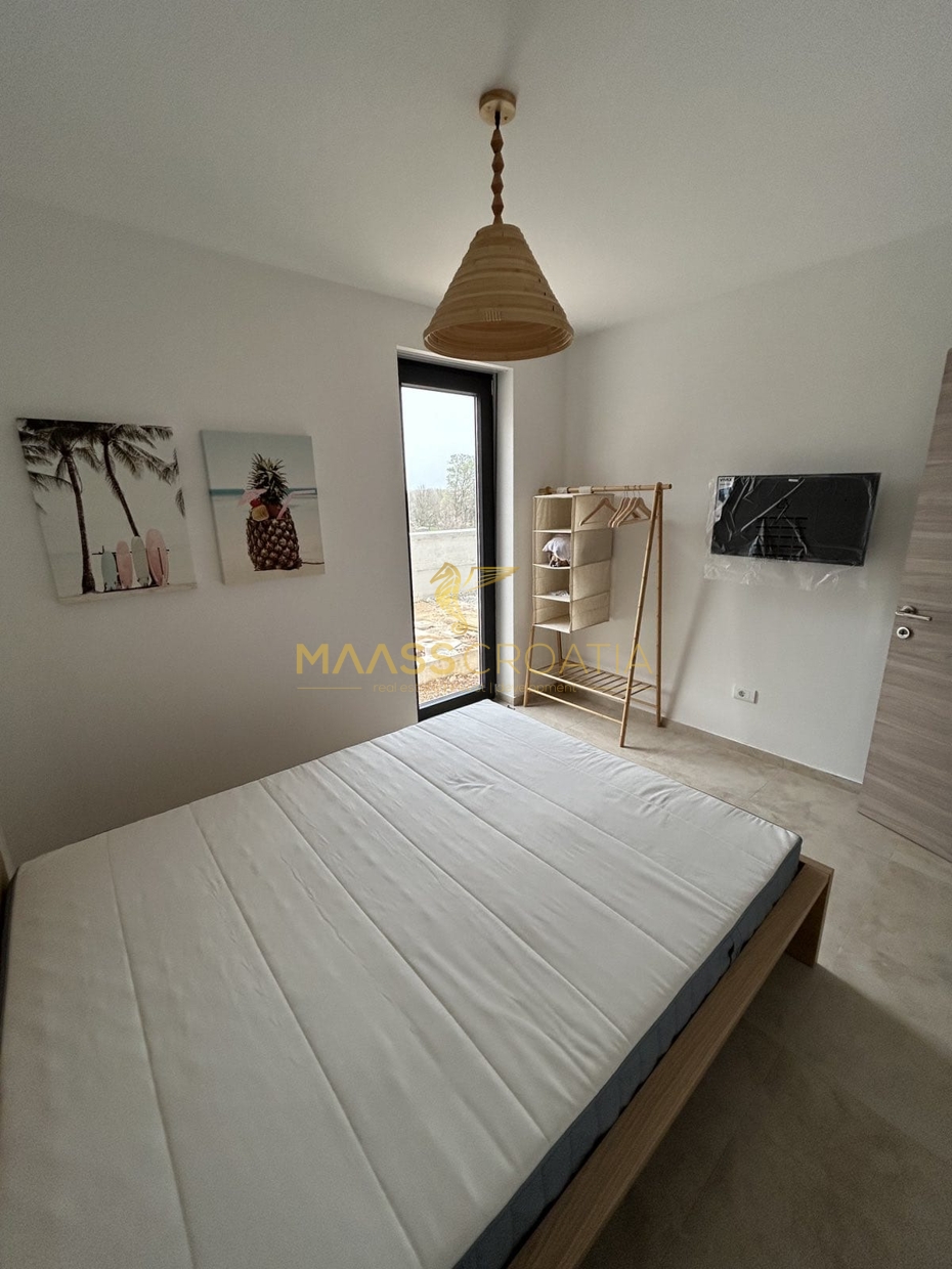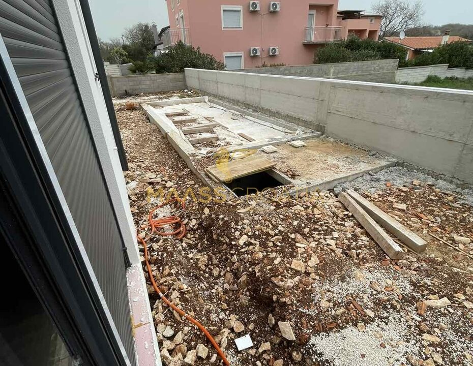 Eladó egy gyönyörű földszinti lakás egy modern új épületben, Medulin egyik legkeresettebb helyén, mindössze 550 méterre a tengertől. Ez az elegáns ingatlan tökéletesen ötvözi a kortárs építészetet, a kényelmet és a magánéletet, és ideális helyet kínál az élethez, a pihenéshez vagy kiváló befektetésnek a turisztikai bérbeadáshoz.