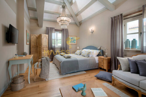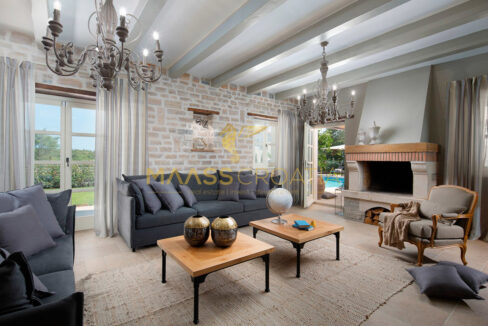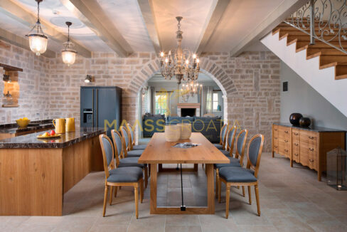 A ház földszintjén található egy tágas nappali kandallóval és műholdas TV-vel, valamint egy tágas fedett terasz étkezőasztallal, grillezésre alkalmas kandalló és egy társalgó, egy nagy, teljesen felszerelt konyha étkezővel, egy kétágyas hálószoba. és egy franciaágy, utolsó WC és kijárat a teraszra, külön WC a nappaliban és zuhanyzó/WC a teraszon.