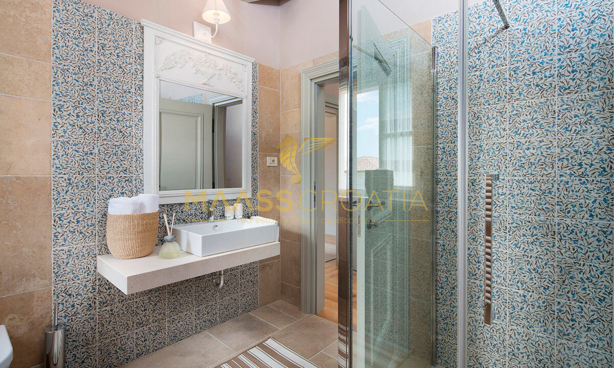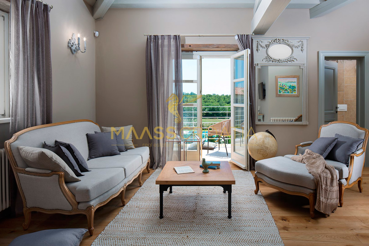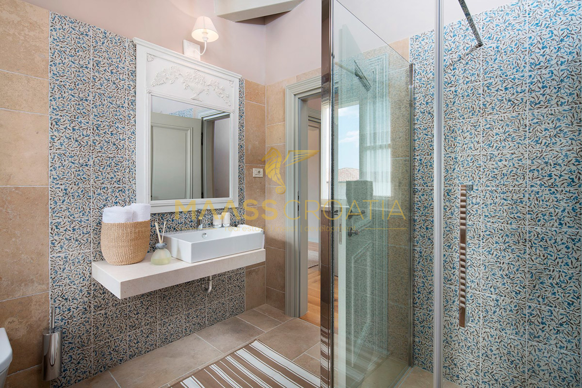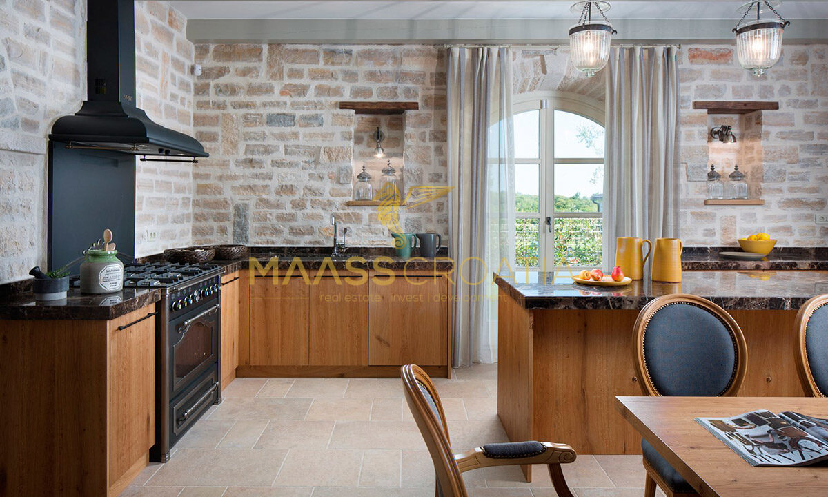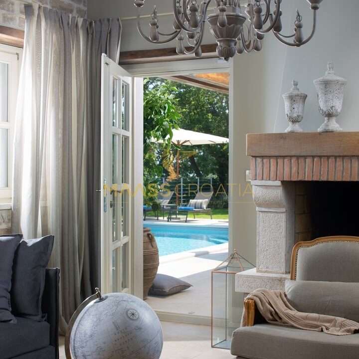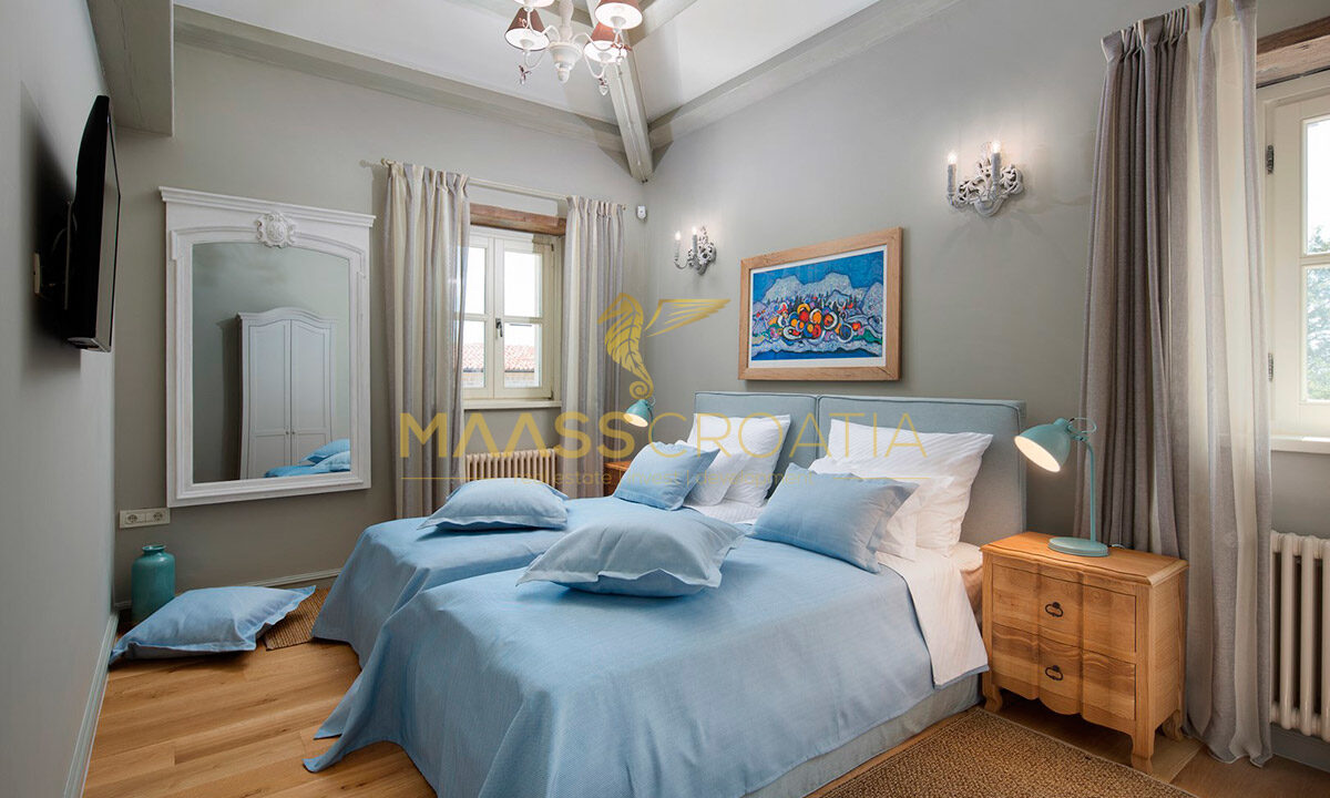 Eladó egy luxusvilla medencével, 359 m2-es lakóterülettel, 880 m-es kerttel, kb. 15 km-re Porečtől és kb. 16 km-re a tengertől, két teljesen légkondicionált emelettel.