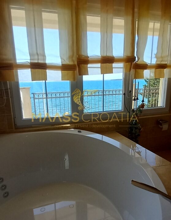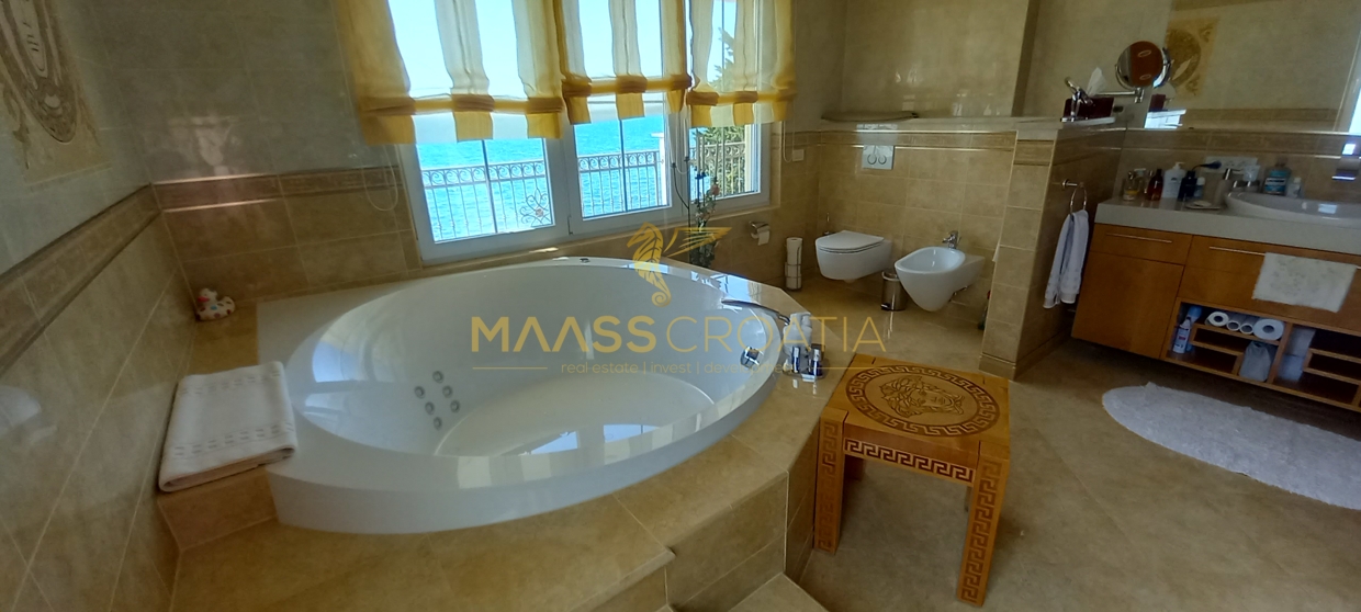 A természetes fénnyel és lenyűgöző tengerre néző, lenyűgöző fürdőszobában mindenféle extrák, pezsgőfürdő és szauna található.