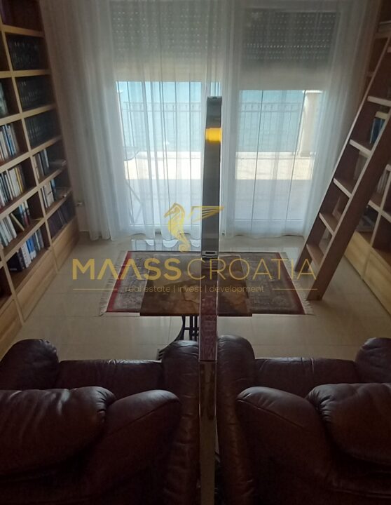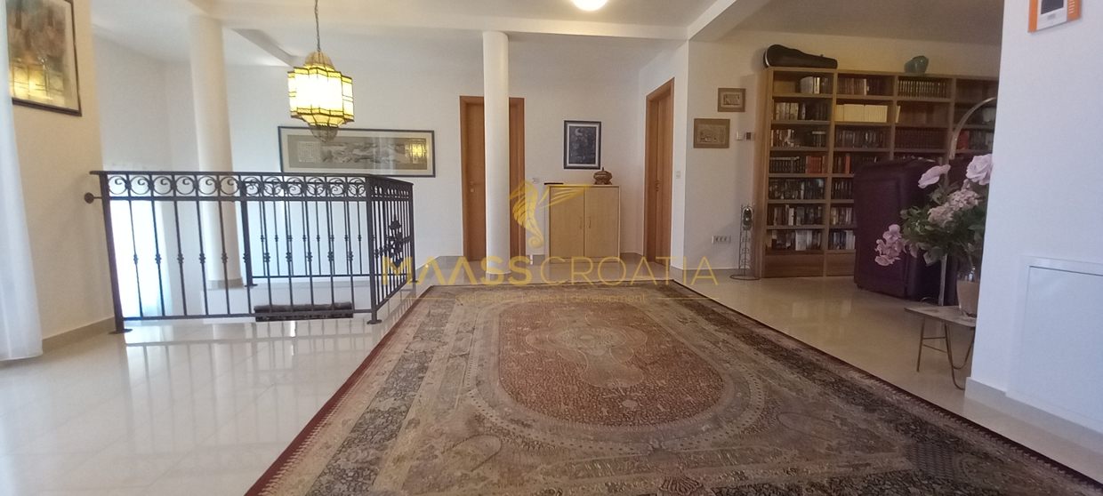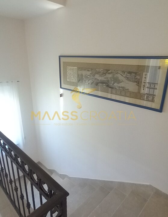 A lépcsőház közvetlenül a tágas galériára vezet, ahol a lenyűgöző, tengerre néző könyvtár is található. Innen juthat el az egyes szobákba.