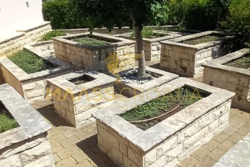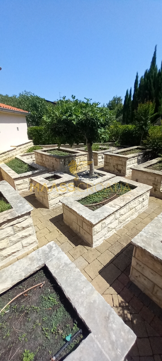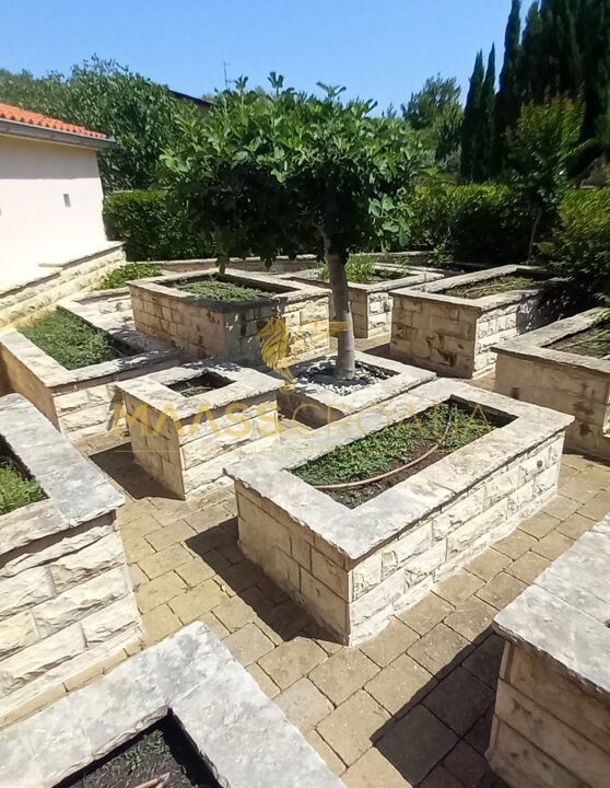 Az egész külterület parkosított és gondozott, gyümölcs- és olajfákat ültettek, gyepet terítettek, az utakat kikövezték, és egy téglából épített magasított ágyásokkal ellátott terület megkönnyíti a hátsó részen a zöldségültetést és a hobbikertészkedést.