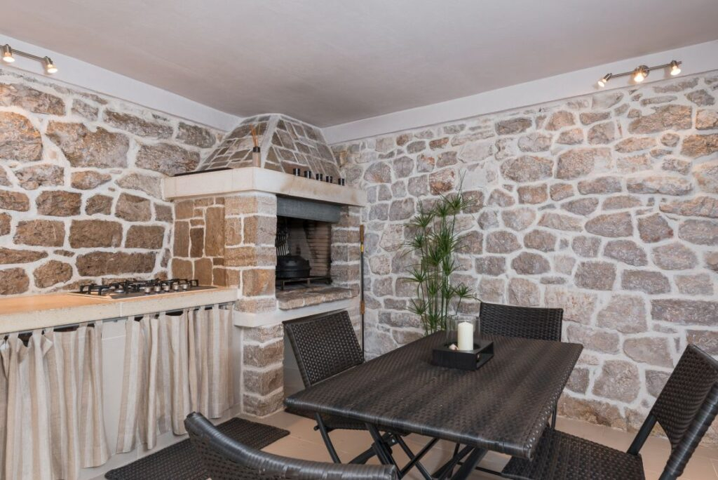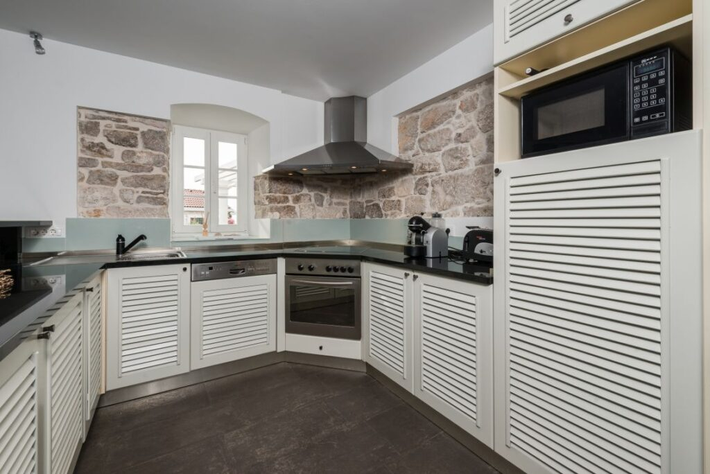 Az ingatlan három egységre/három kőházra oszlik. A központi főépület az ingatlan szívében található, és két szinten terül el. Négy hálószobával és négy fürdőszobával rendelkezik. A földszinten található egy teljesen felszerelt, modern konyha, egy elegánsan berendezett étkező, egy elegáns nappali és egy modern fürdőszoba.