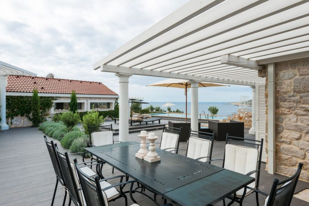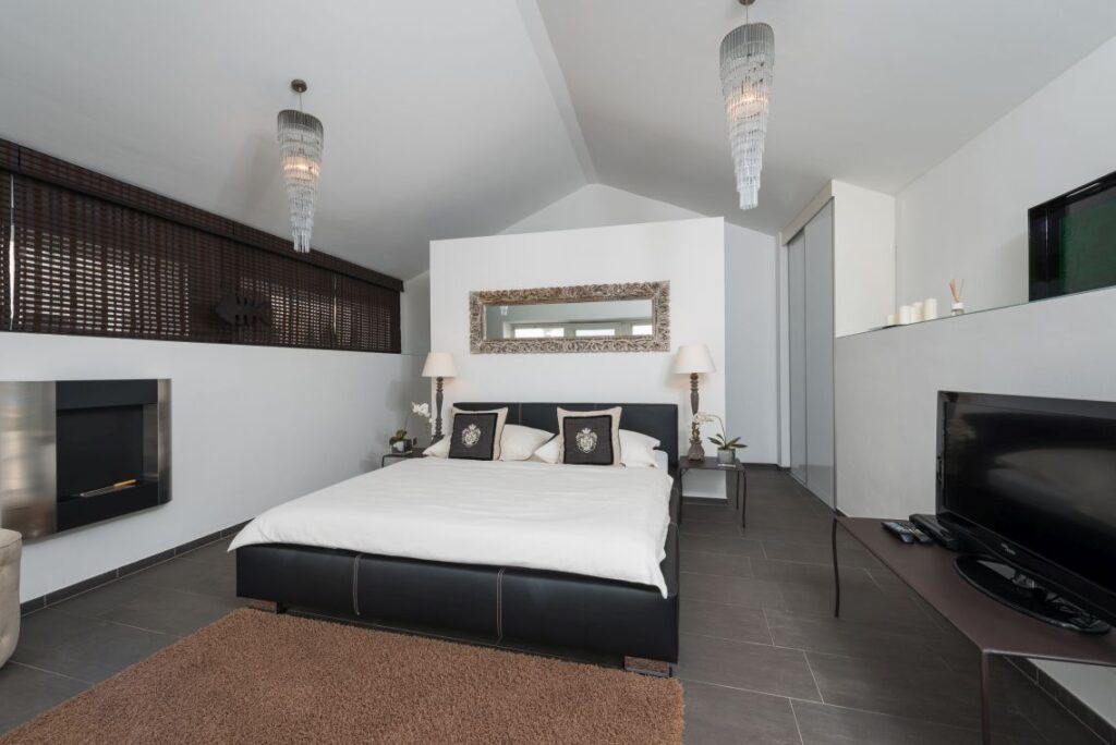 A két emeletet csigalépcső köti össze az első emelettel. Itt található egy tágas fő hálószoba és egy gyönyörű terasz kényelmes székekkel, hogy pihenjen és élvezze a kilátást az ingatlanra, a medencére és a végtelen tengerre.