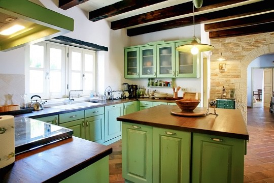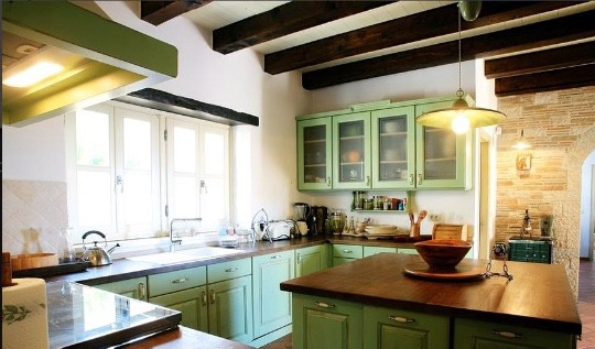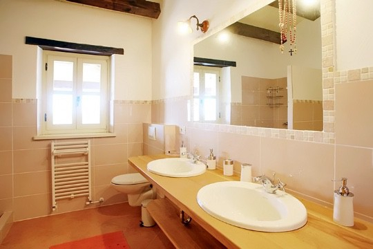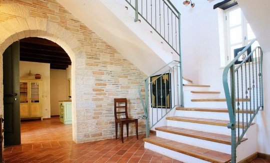 A gyönyörű fehér kő a falakon és a masszív fagerendák a mennyezeten a háznak a régió különleges karakterét és identitását adják.
