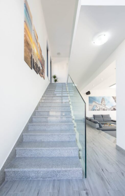Mivel ez az ingatlan Split új külvárosában található, csak autóval érhető el, tömegközlekedéssel nem annyira, ami megfelel azoknak, akik egy privátabb típusú ingatlant szeretnének és keresnek.