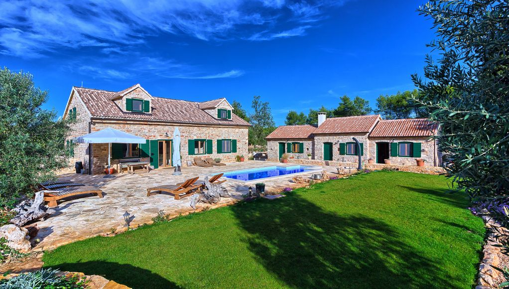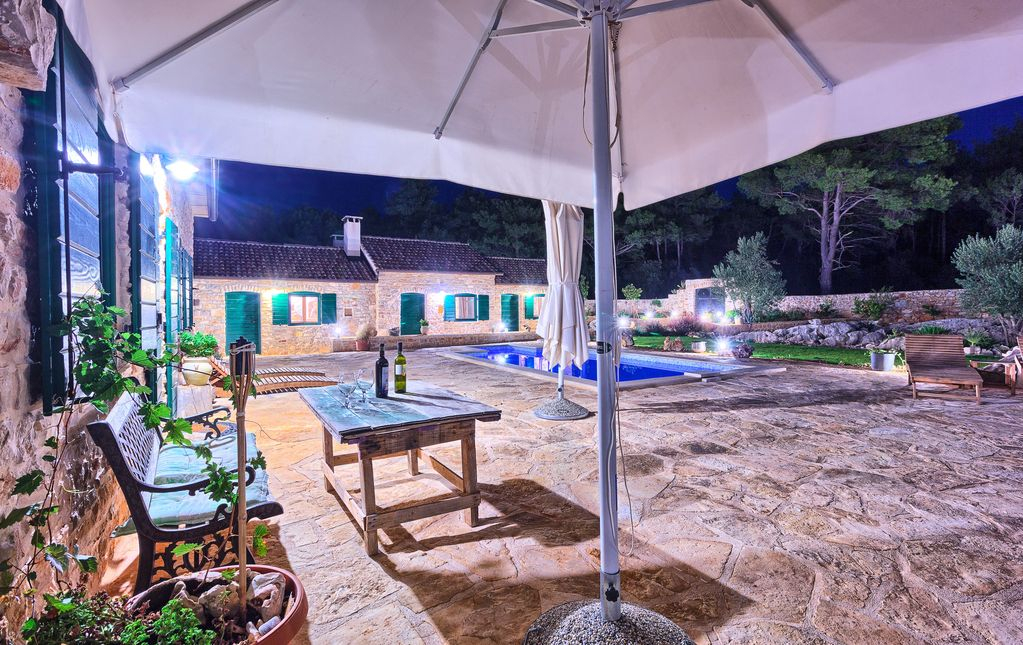 Kőház medencével Brac szigetén