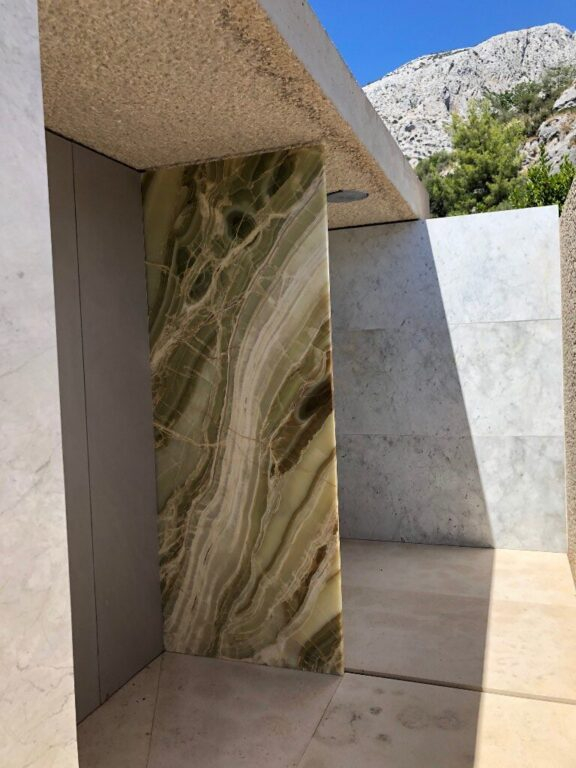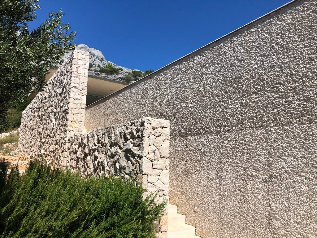 Ez a 480 m2-es ház egy 1720 m2-es telken helyezkedik el. A teljes egészében a legjobb és legtartósabb anyagokból, például betonból, kőből és márványból épült, geometrikus formájú és művészi kivitelű ingatlan összesen 4 hálószobával és fürdőszobával rendelkezik.
