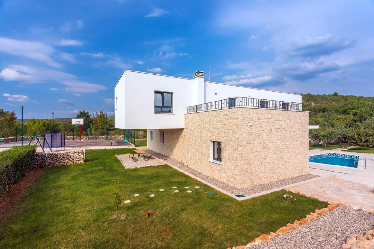 Új épület! Modern lapostetős ház medencével és panorámás kilátással