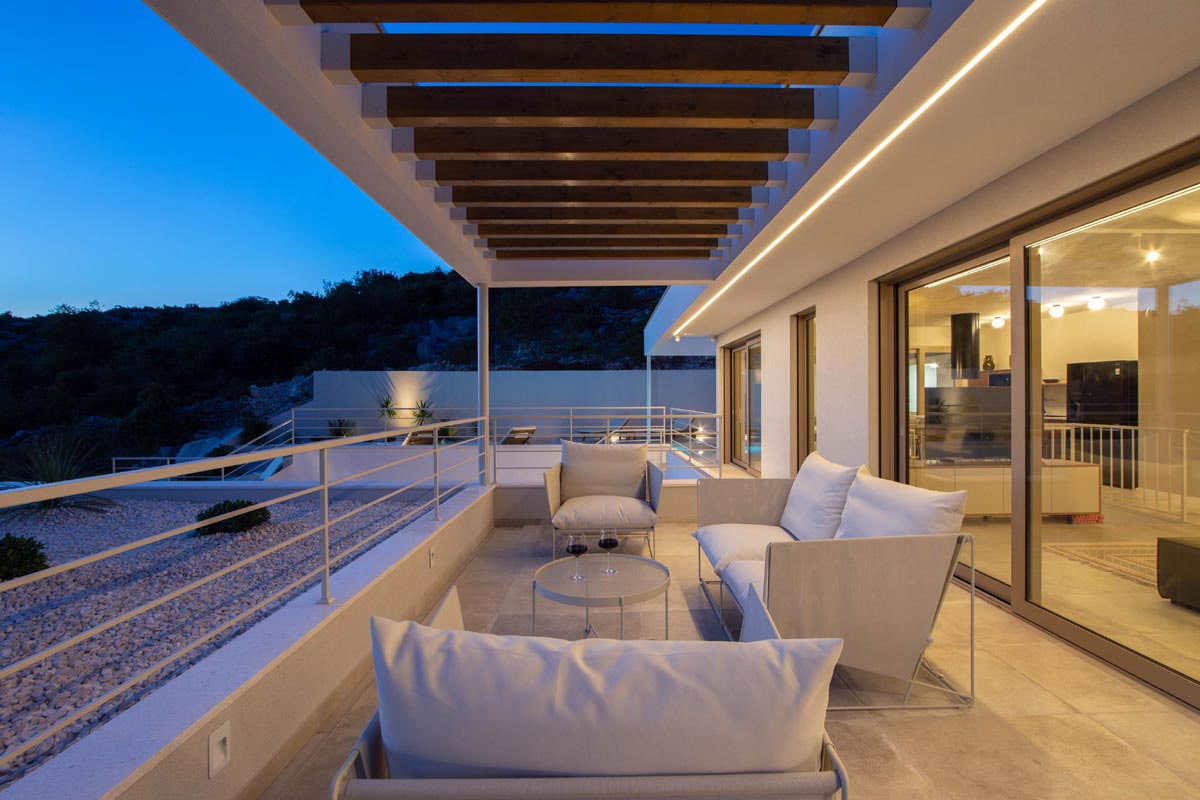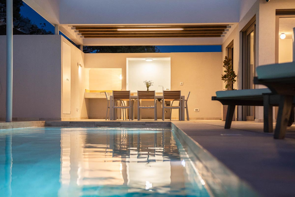 Innen élvezheti az öbölre és a tengerre nyíló csodálatos kilátást. Aki a medencénél jobban szereti a strandot, az egyszerűen elsétálhat a tengerpartra, hiszen az csak néhány méterre van a háztól!