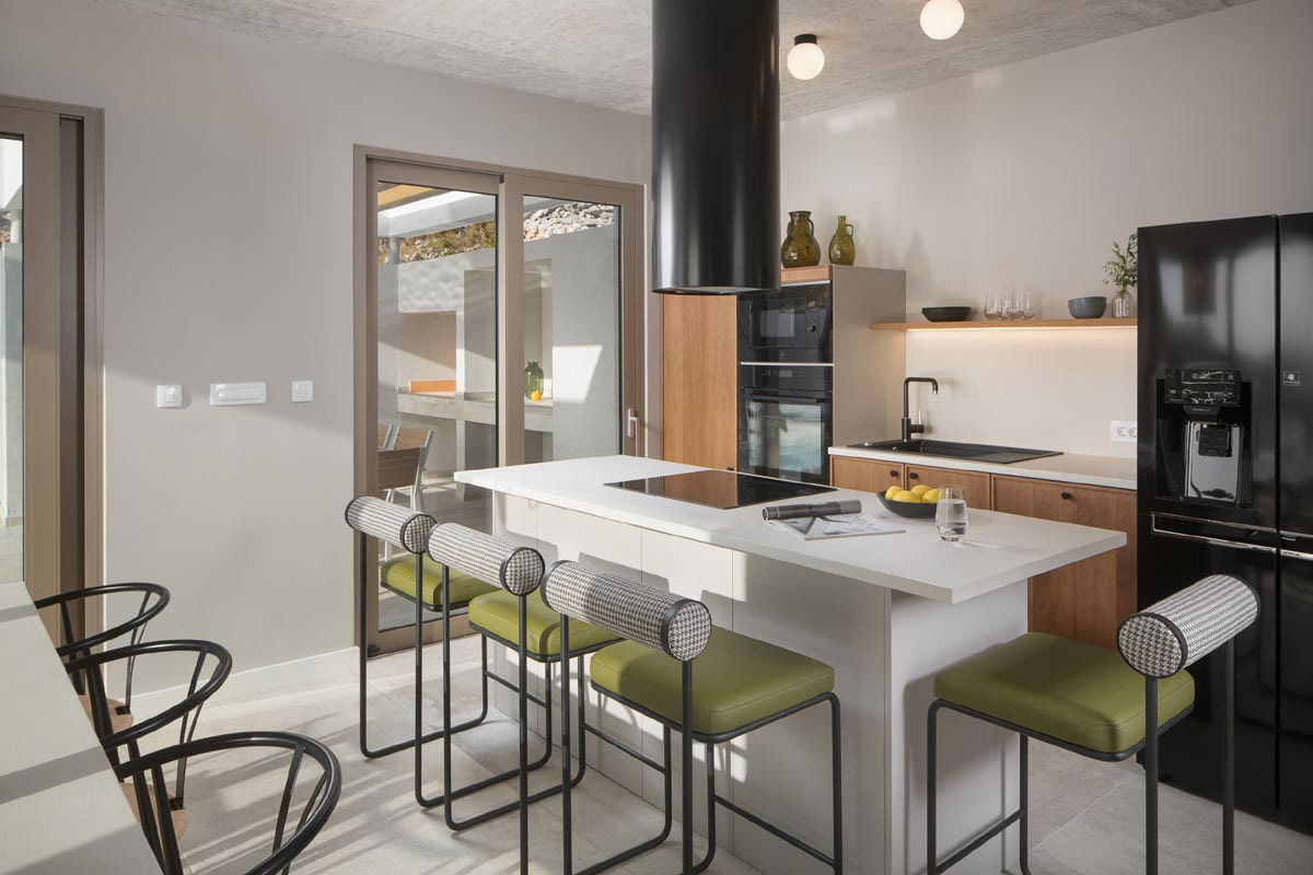 A koncepció nagyon érdekes és változatos, megteremti ezt a belső dinamikát, és a helyet a lehető leginteraktívabbá teszi. A ház belseje tiszta és minimalista megközelítésével egyszerre támogatja az egyszerűséget és a melegséget. A házhoz tartozik egy tágas garázs, valamint egy beépített szauna, jacuzzi és edzőterem. A ház legközpontibb része minden bizonnyal a fő szabadtéri teraszon található nagyméretű medence lesz, amelyet a szórakozásra használnak majd.