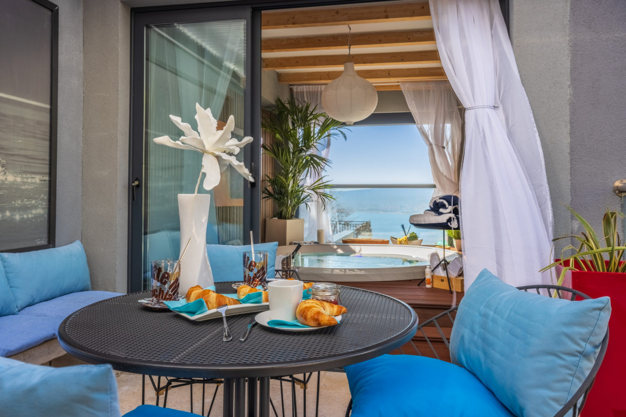Luxus design villa lélegzetelállító kilátással a tengerre egy domboldalon