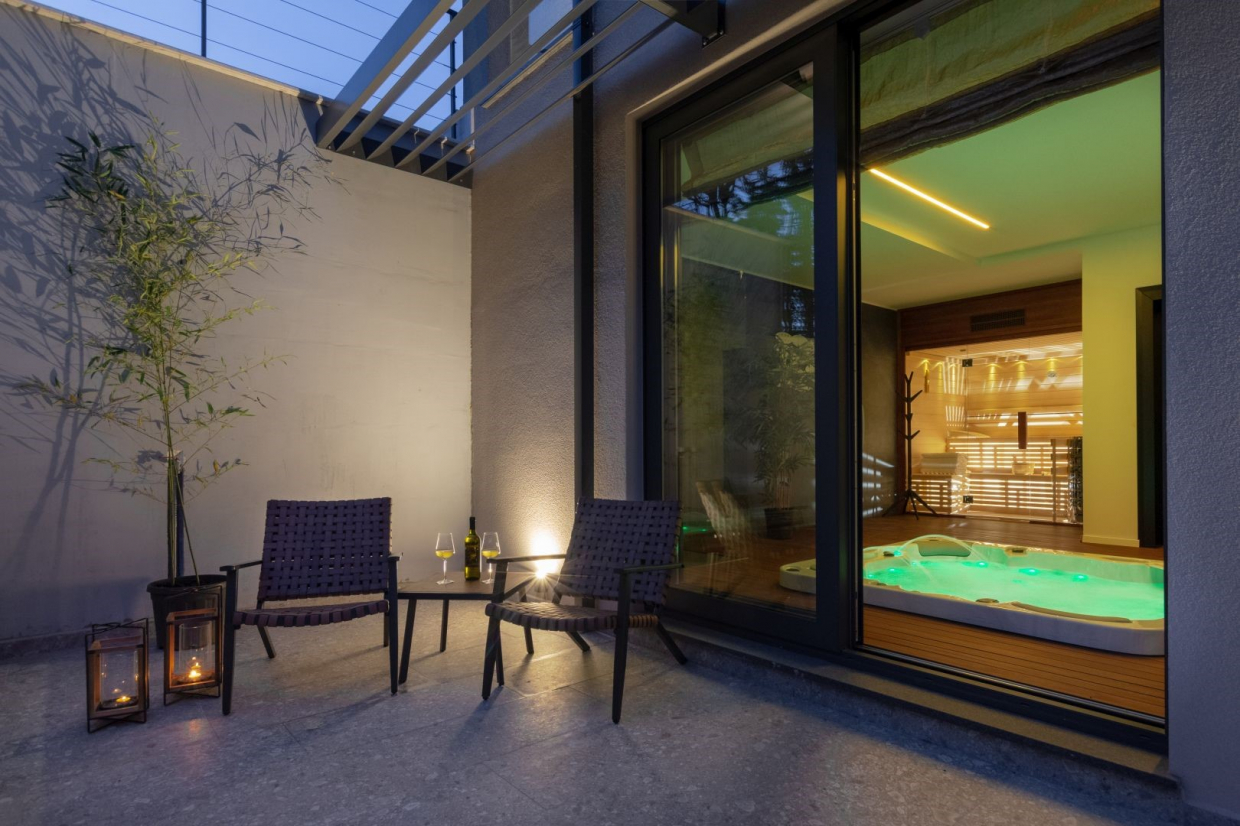 Az 1500 m2-es kiterjedt telek rengeteg helyet kínál a szabadtéri tevékenységekhez, akár a kertben szeretne pihenni, akár a teraszon étkezni, akár a szaunában vagy a pezsgőfürdőben lazítani.