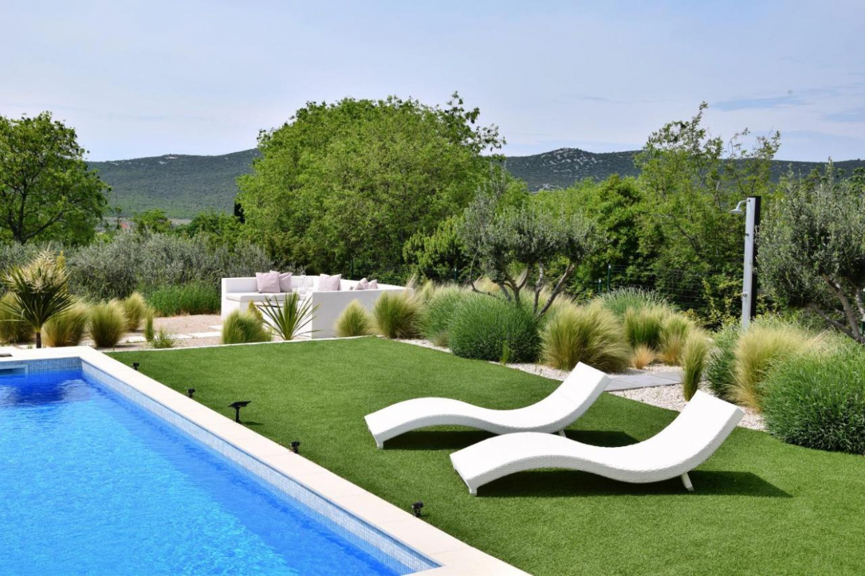 Itt egy nagy ház medencével Ciovo szigetén eladó. A ház három szintből és két különálló lakóegységből...