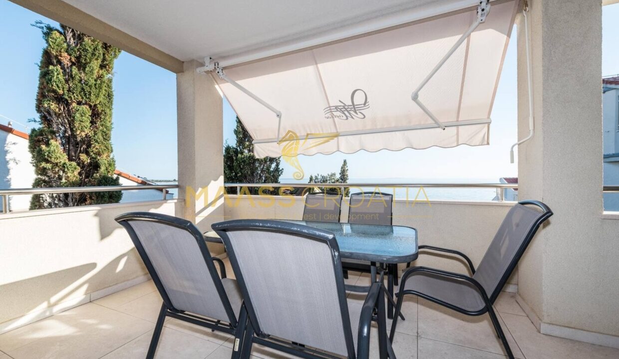 Eladó egy lakás az első emeleten egy luxusvilla első emeletén, amely közvetlenül a tengerparton található Novalja Pag szigetén.