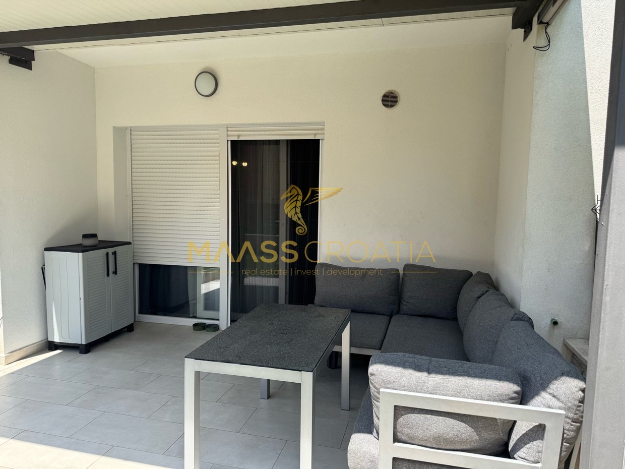 Nagy apartman két emeleten Medulinban: közel a tengerhez, tengerre néző kilátással és 50 m²-es udvarral