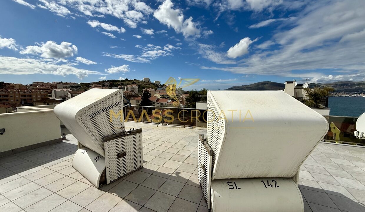 Az első emeleten található lakás fényességével és a gyönyörű, tengerre néző erkéllyel nyűgöz le.