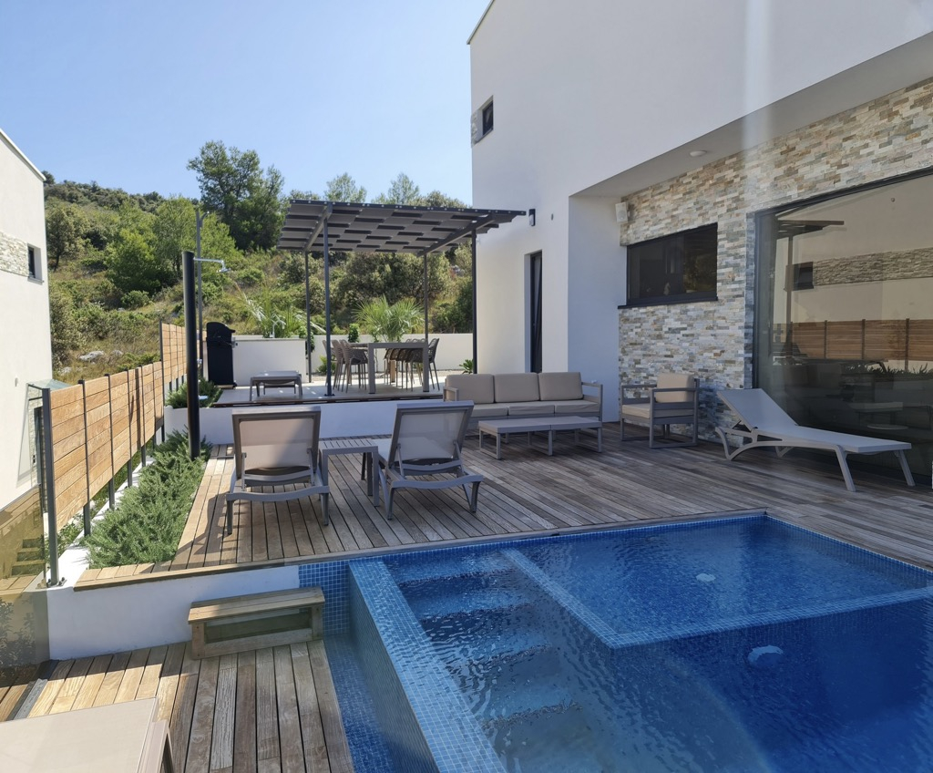 A ház egy 680 m²-es telken, 70 méterre a tengertől, kiváló helyen, a strandhoz közel található. Három...