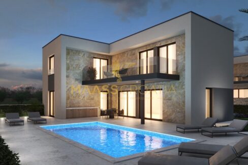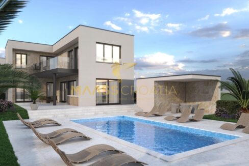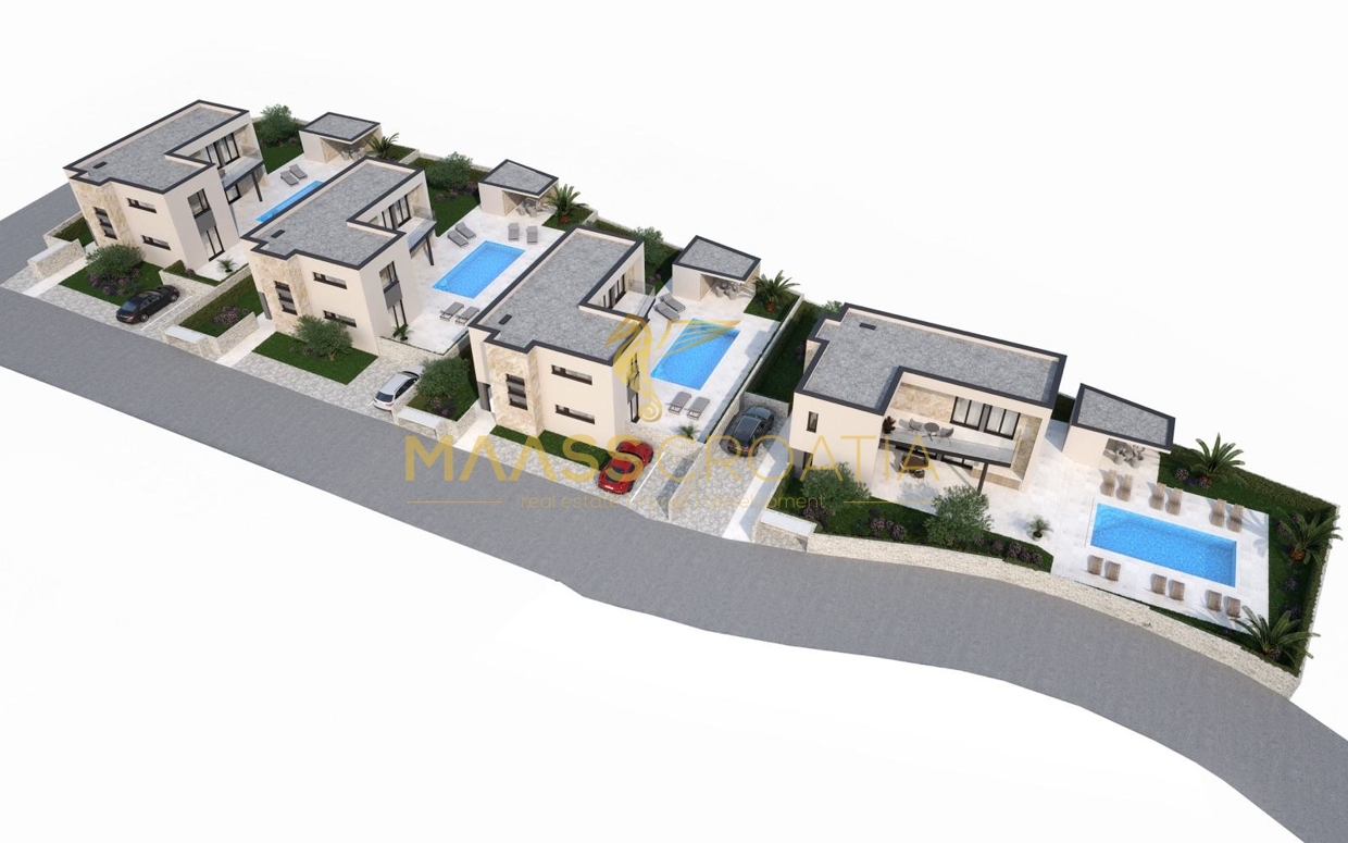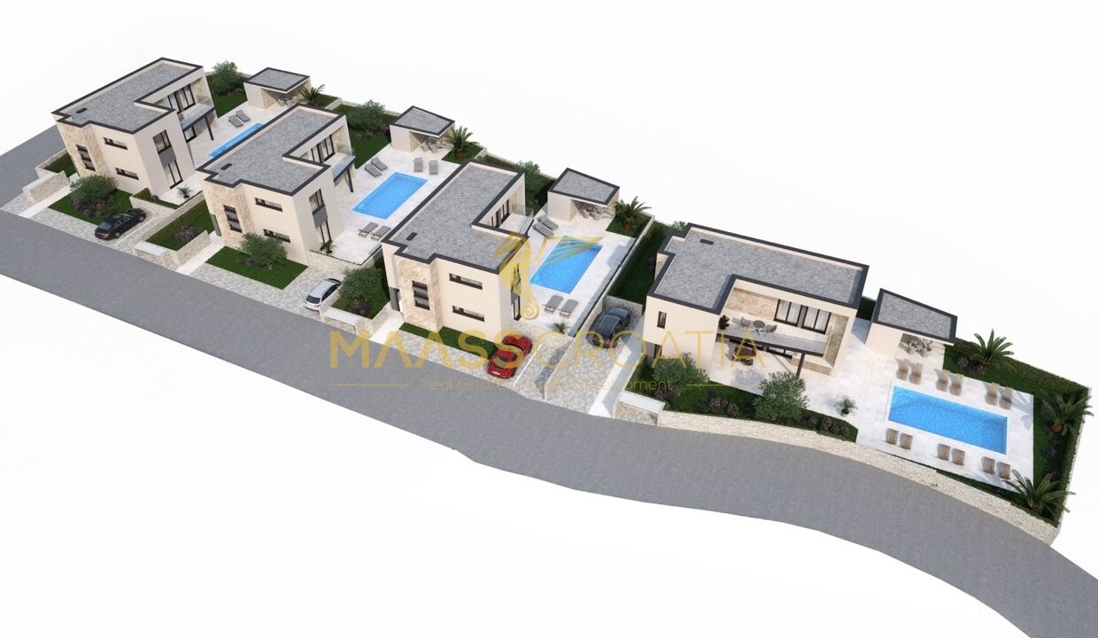 Az ingatlan egy exkluzív projekt, 600 m²-es tágas telekkel, saját parkolóval és 8×4 méteres úszómedencével.