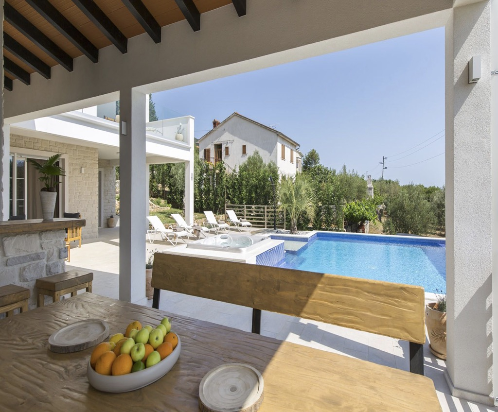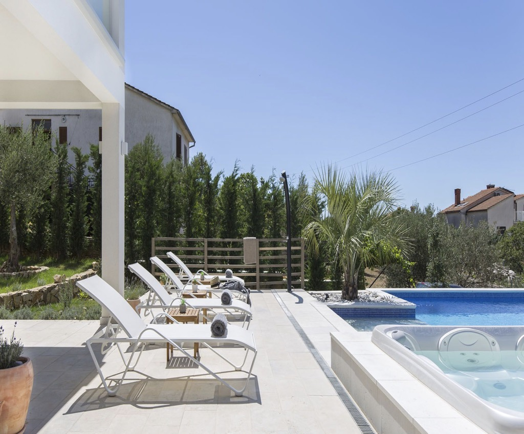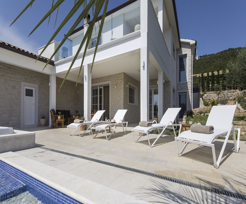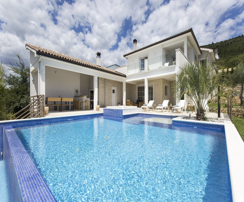 Modern villa tengerre néző kilátással és medencével, csendes helyen